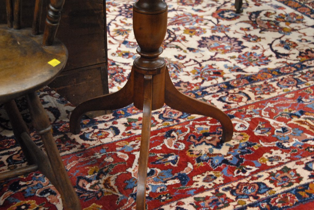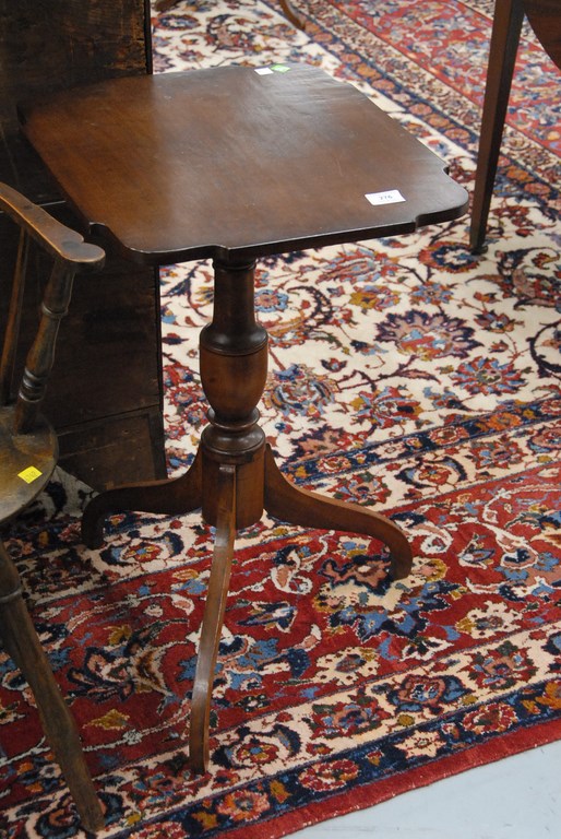 Lot 276: Federal candlestand with shaped top and turned shaft on tripod base. ht. 28in. top: 17 x 19