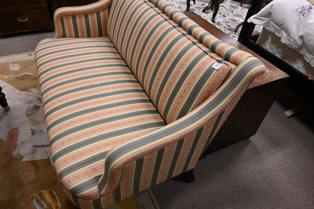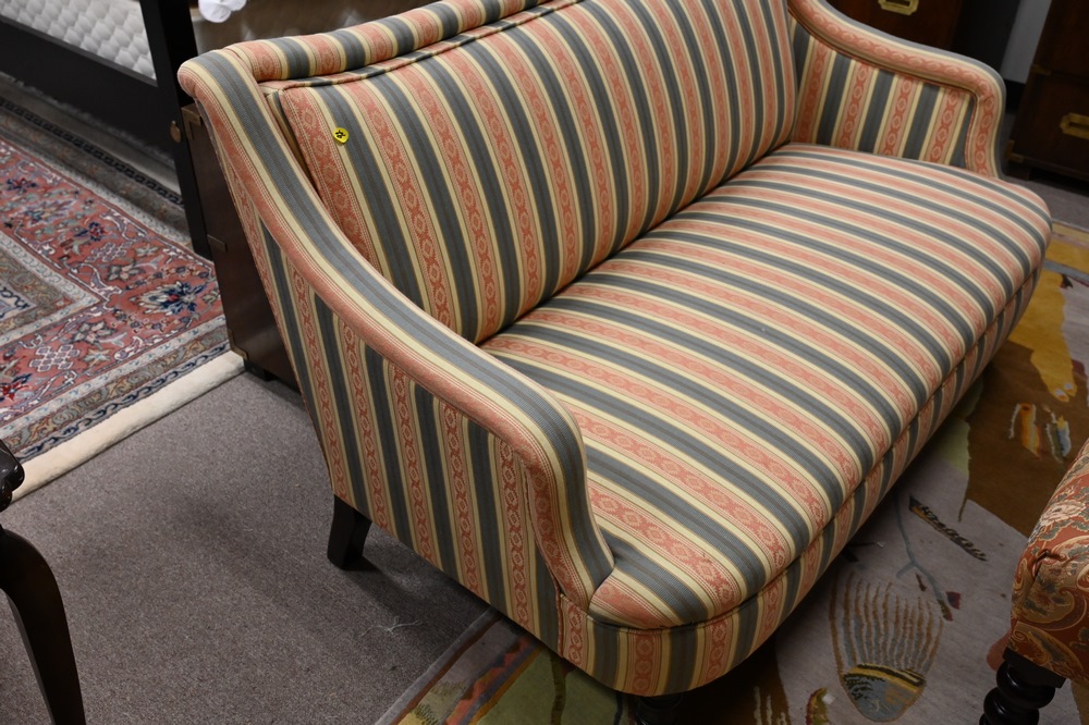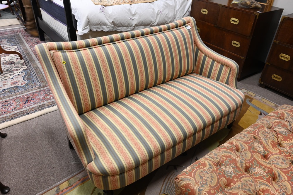 Lot 276: George Smith Upholstered Sofa, on turned legs, original upholstery, height 33 inches, 57 inches.