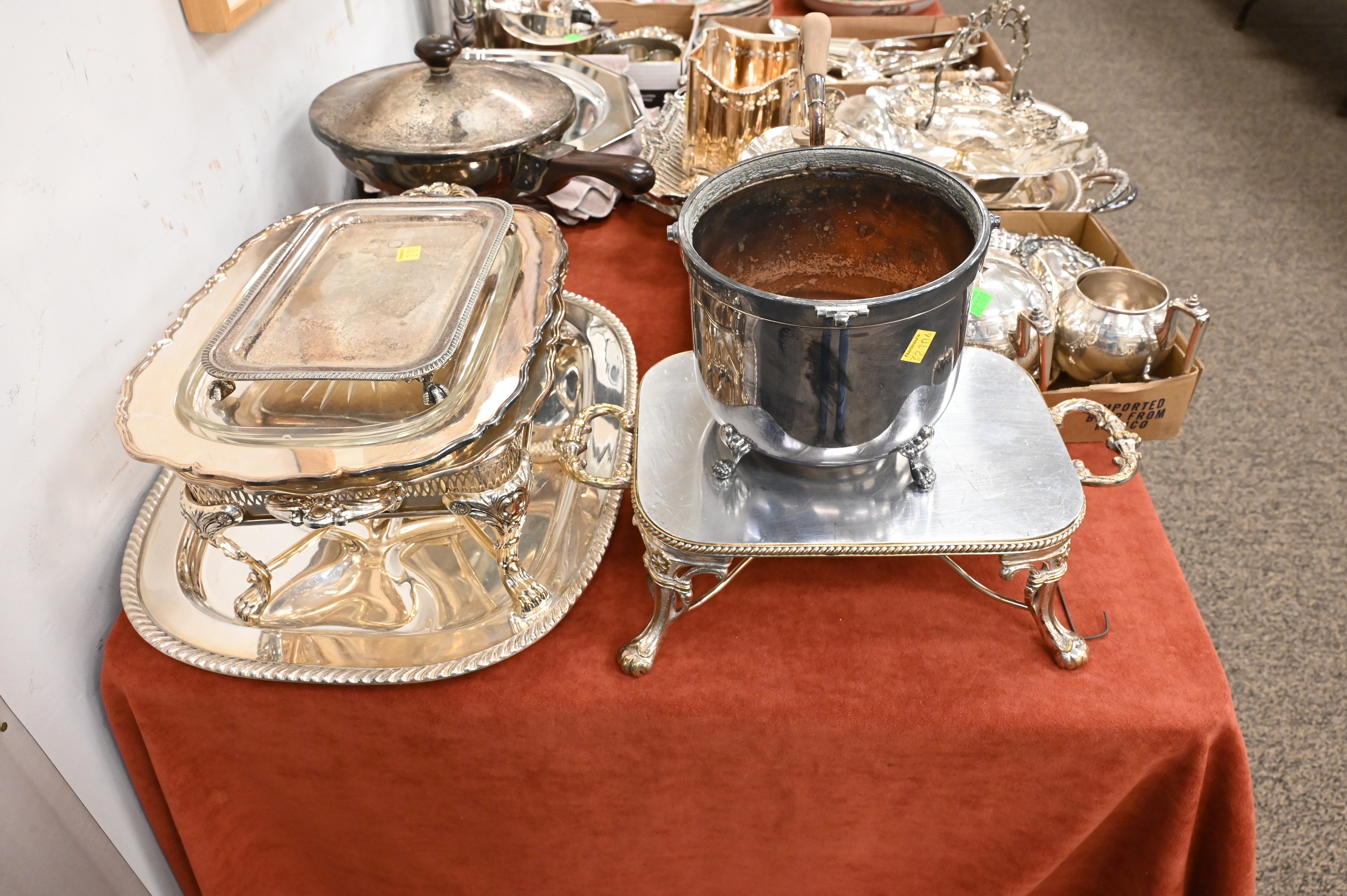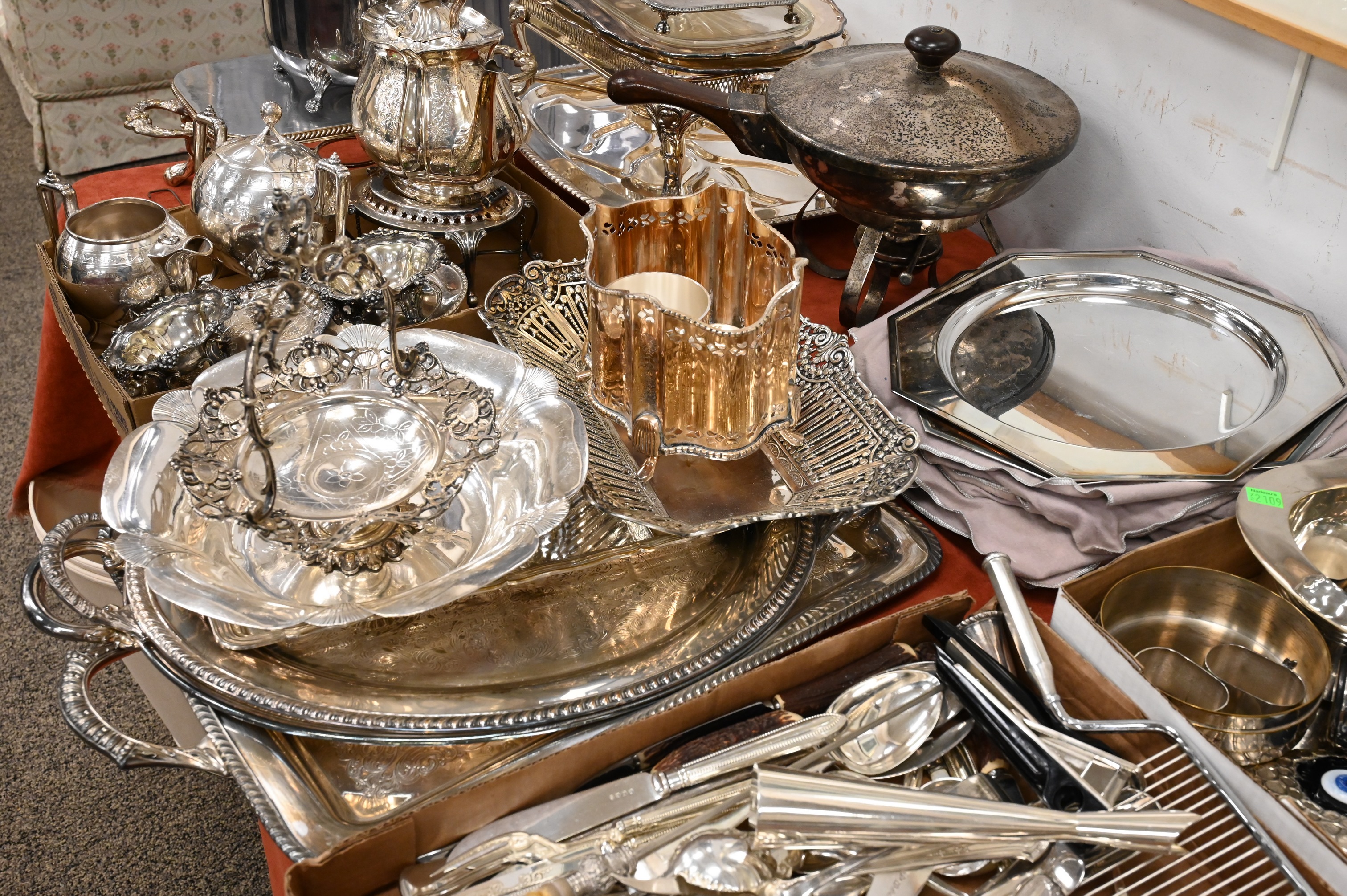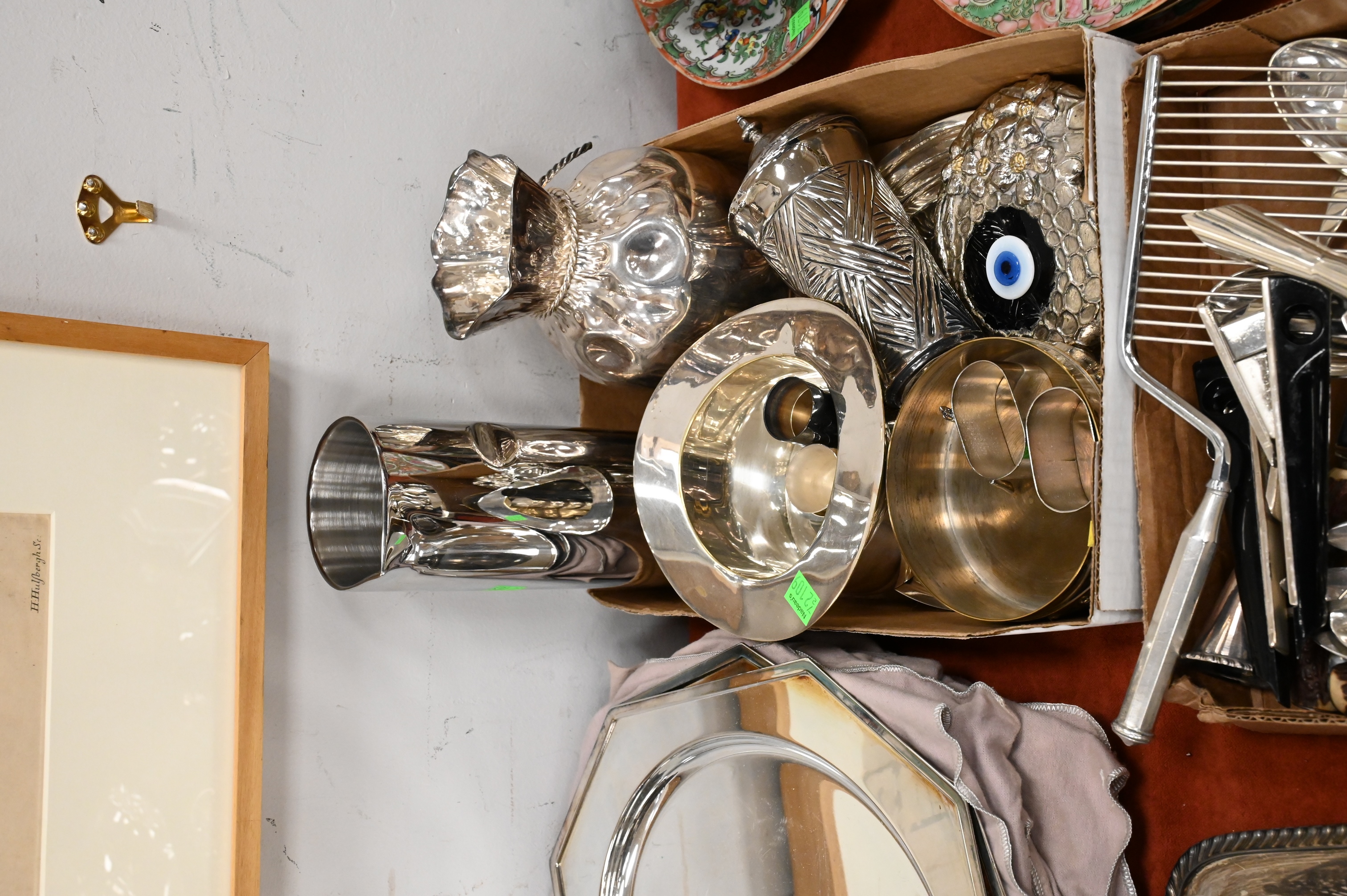 to include Christofle vase and plate, hat bucket, plates, tea sets, trays, etc.