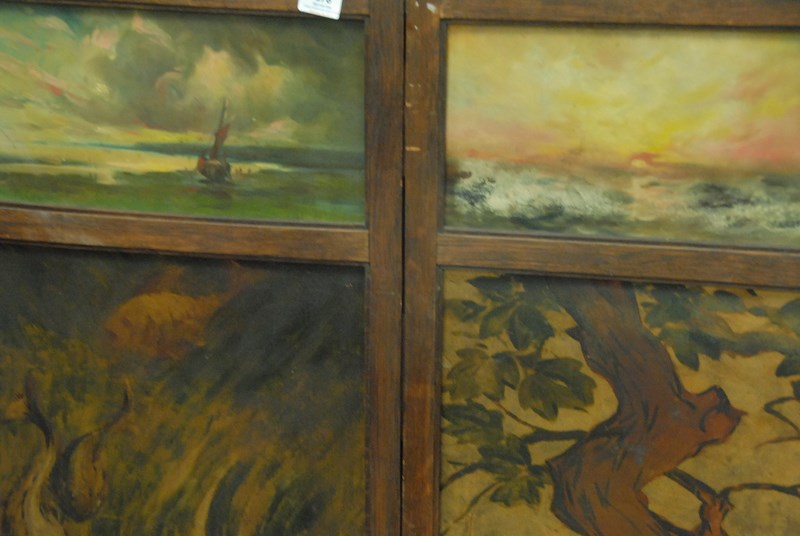 Hand painted two part screen, oak trim. ht. 40 1/2in. lg. 42in.