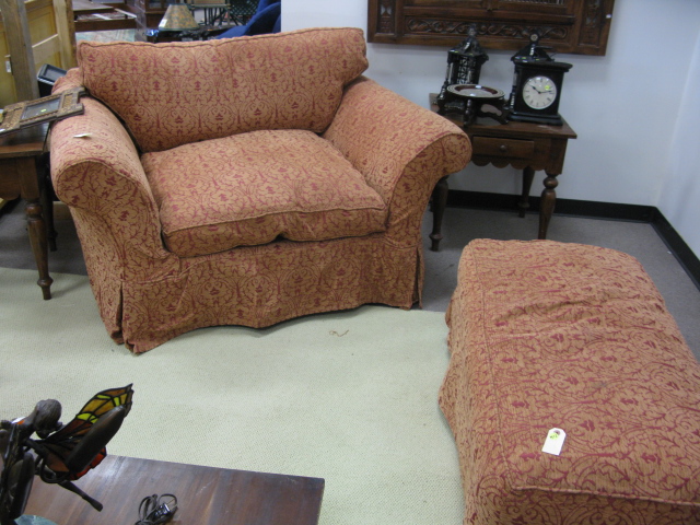 Large upholstered sofa, an oversized chair and a large footstool, bought from ABC furniture company in New York.