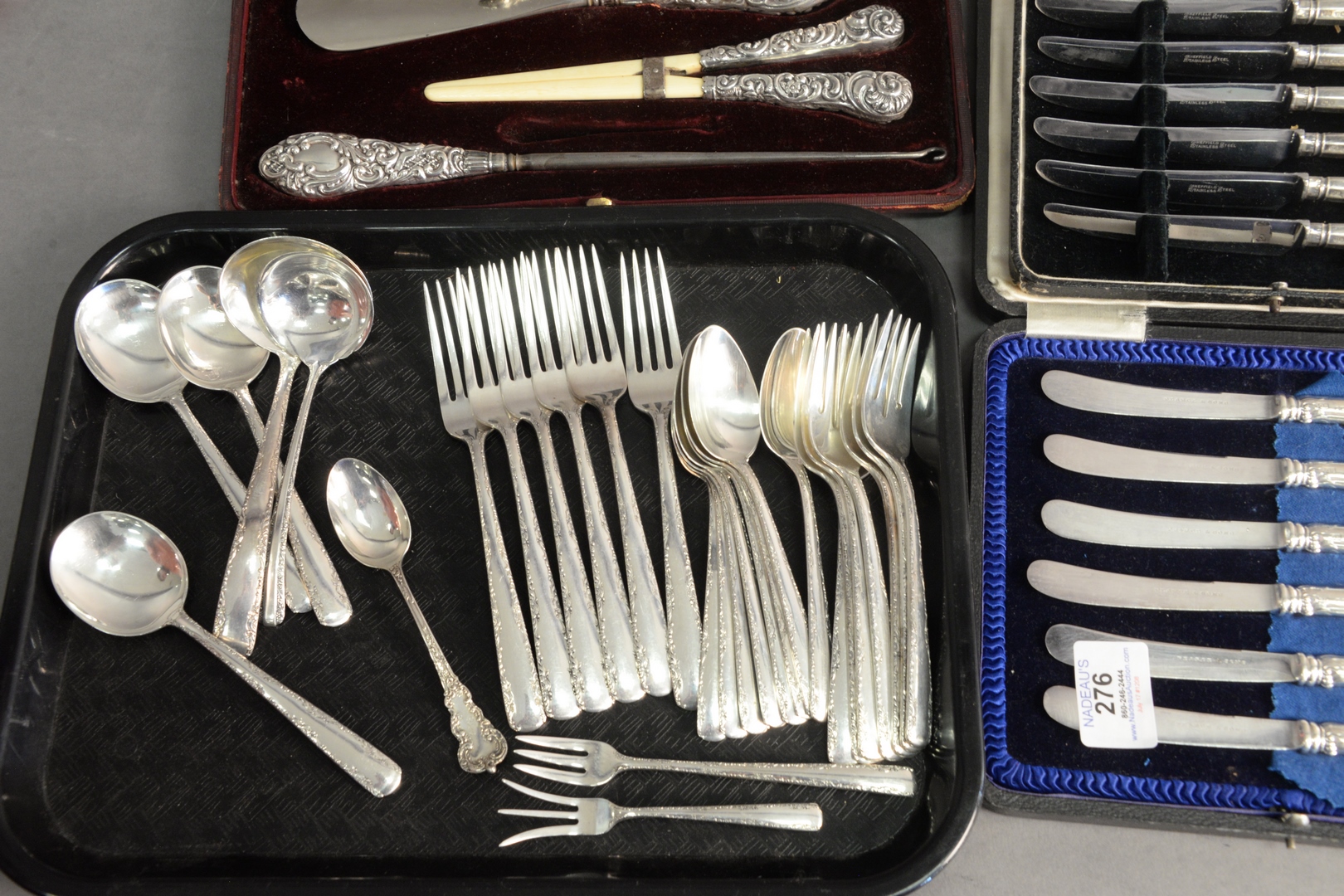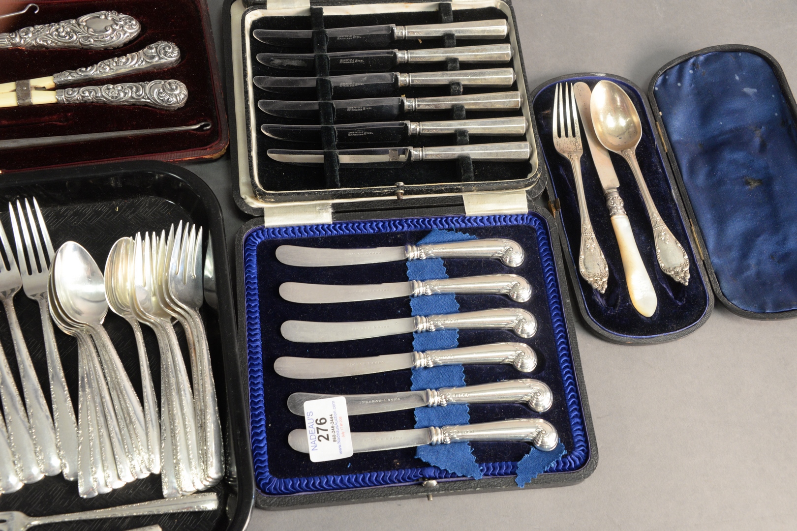 Lot 276: Lot of Sterling Silver Partial Flatware, to include four fitted boxes with flatware with sterling silver handles, weighable 35.1 t.oz.