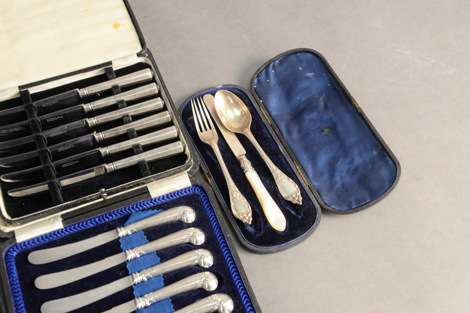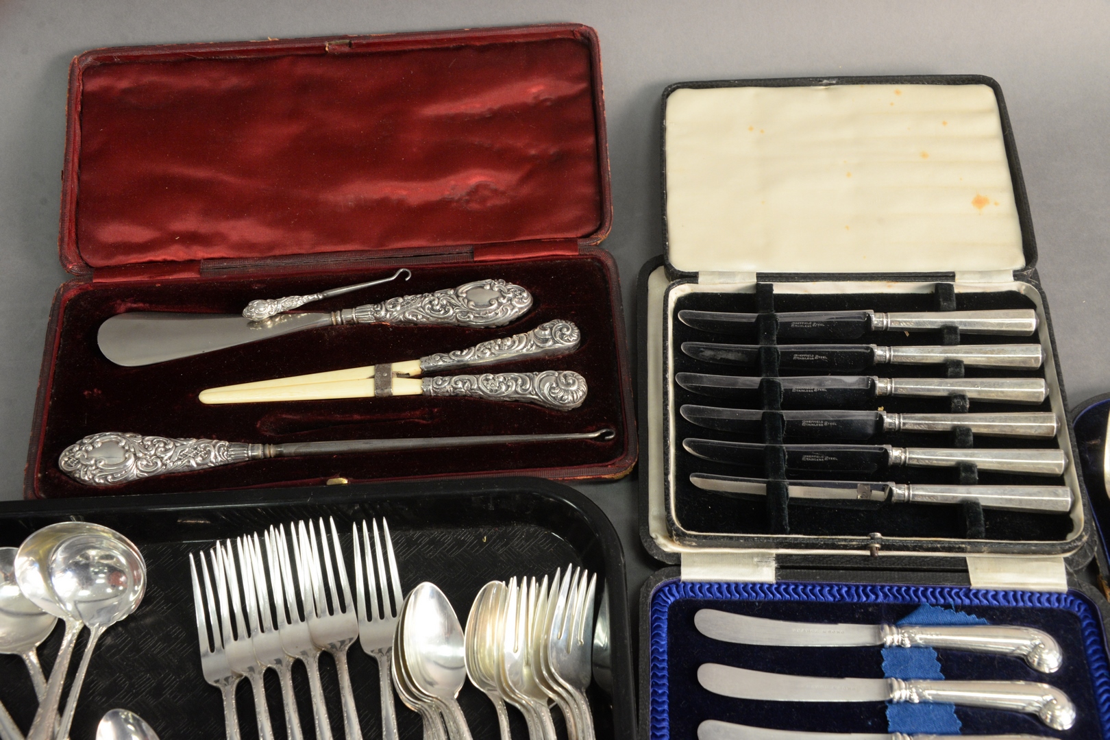 Lot of Sterling Silver Partial Flatware, to include four fitted boxes with flatware with sterling silver handles, weighable 35.1 t.oz.