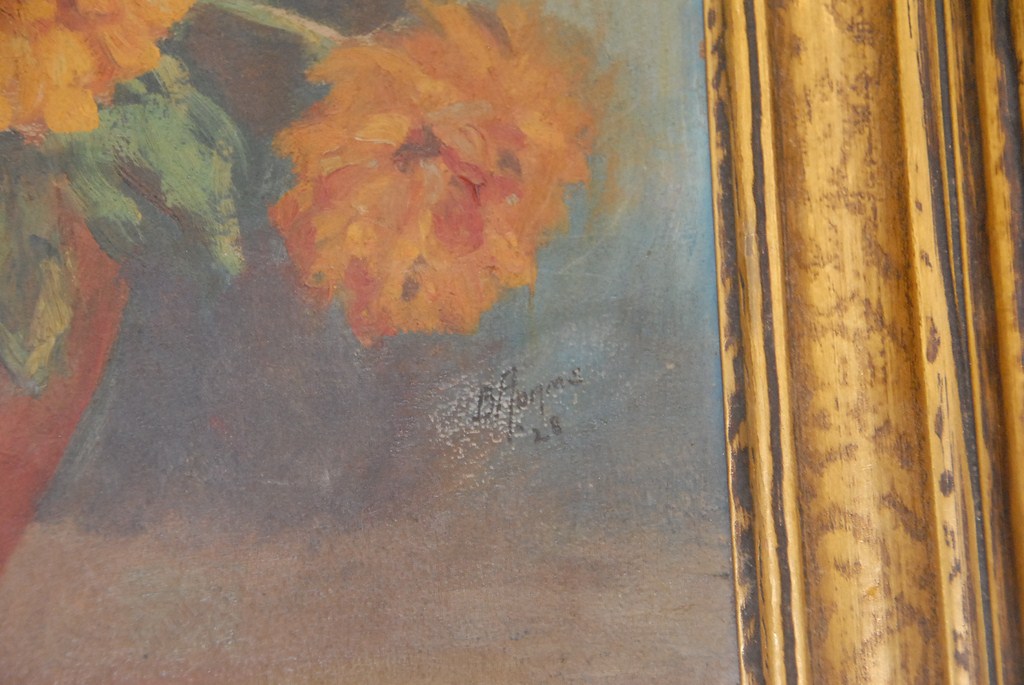 Oil on board still life flowers in vase, signed D. Adams, 16 x 20.