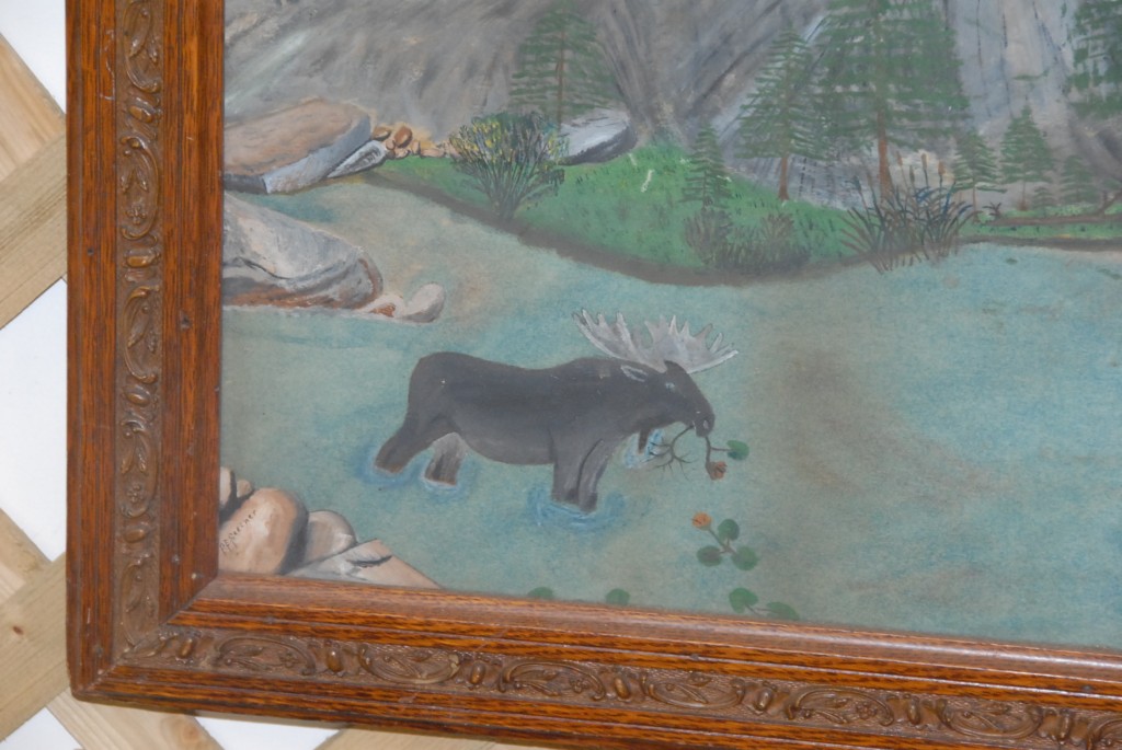 Pastel river and bull moose signed Steiner.