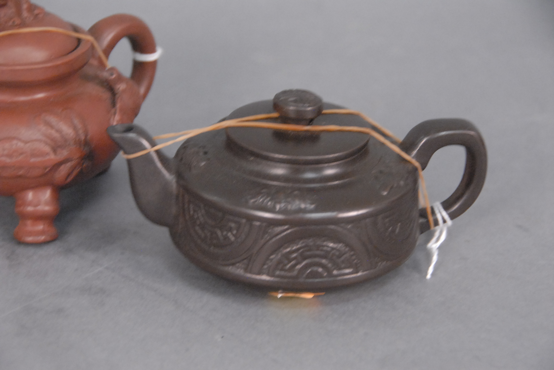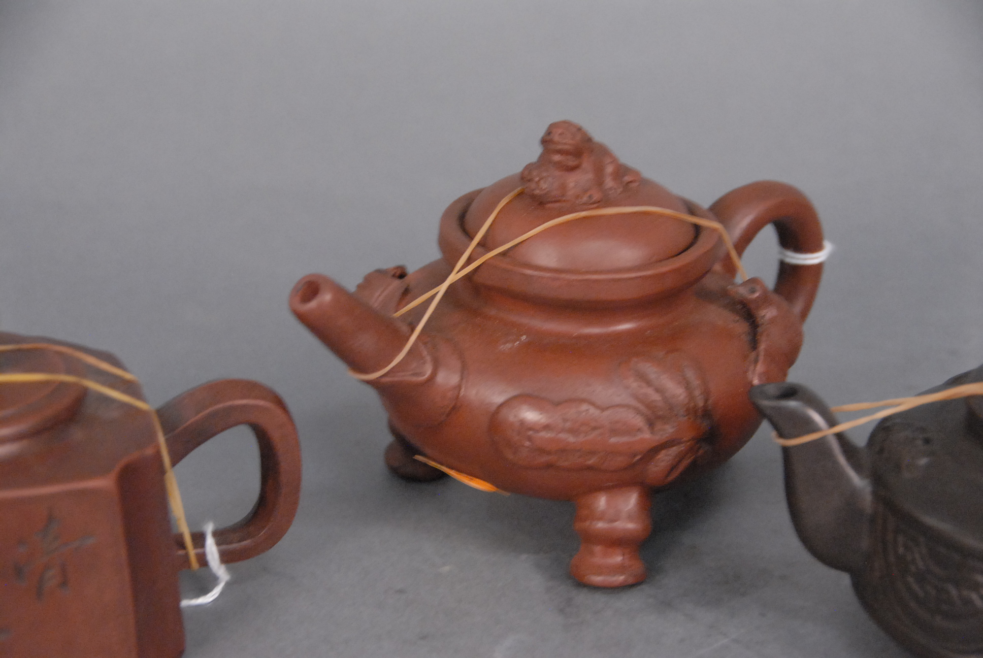 Three porcelain teapots, hts. 3in. – 5in.