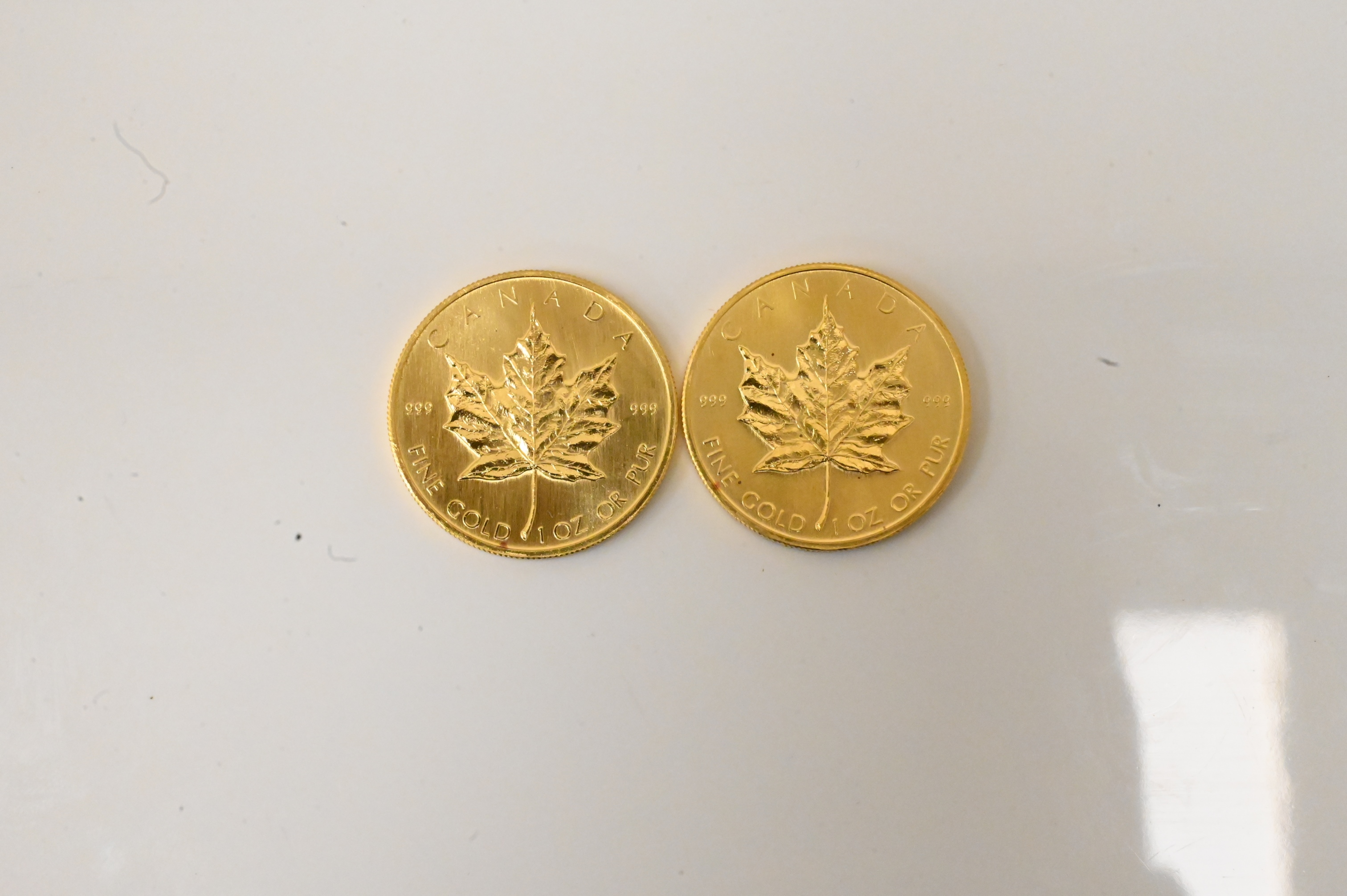 Two 1980 Canadian One Ounce Fine Gold $50 Maple Leafs, 2 oz total
