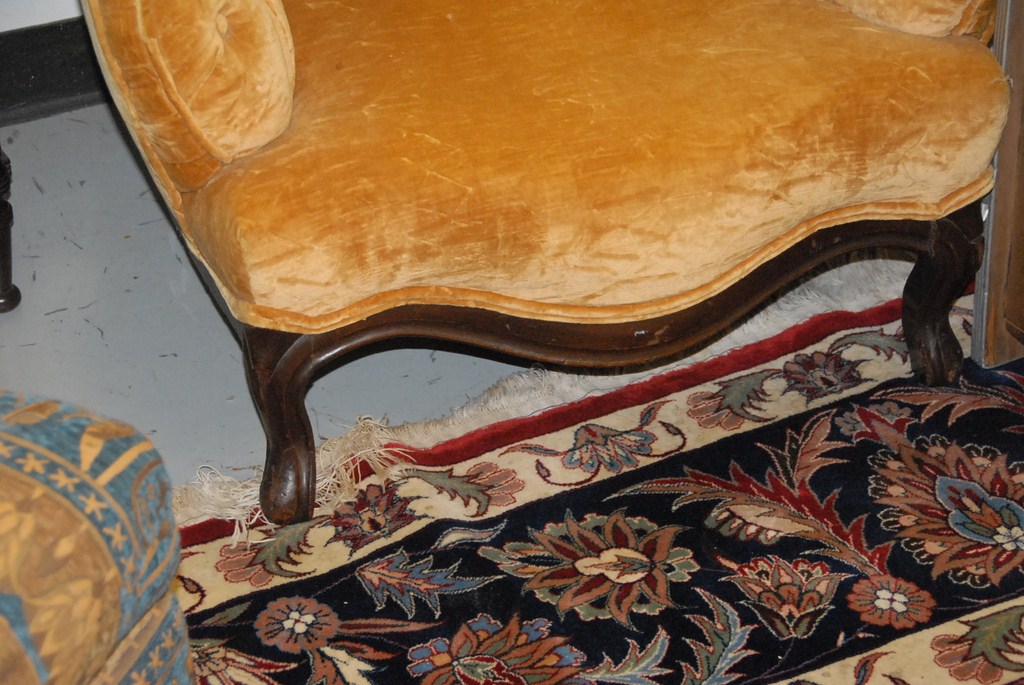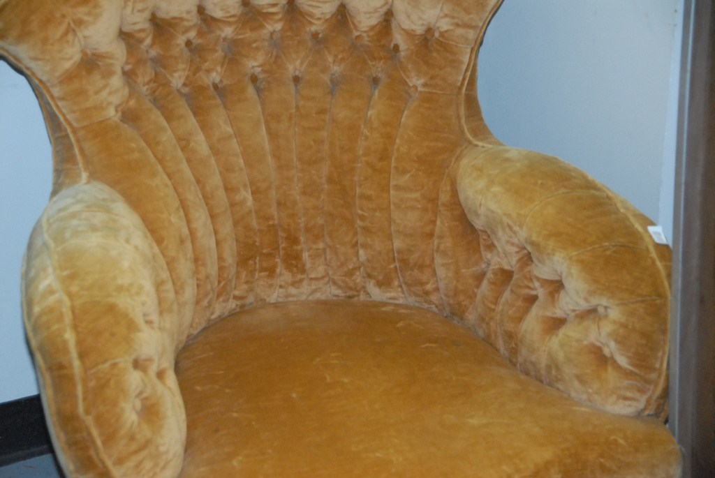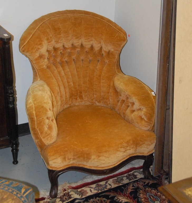 Victorian Sleepy Hollow type upholstered chair in newer tufted upholstery.