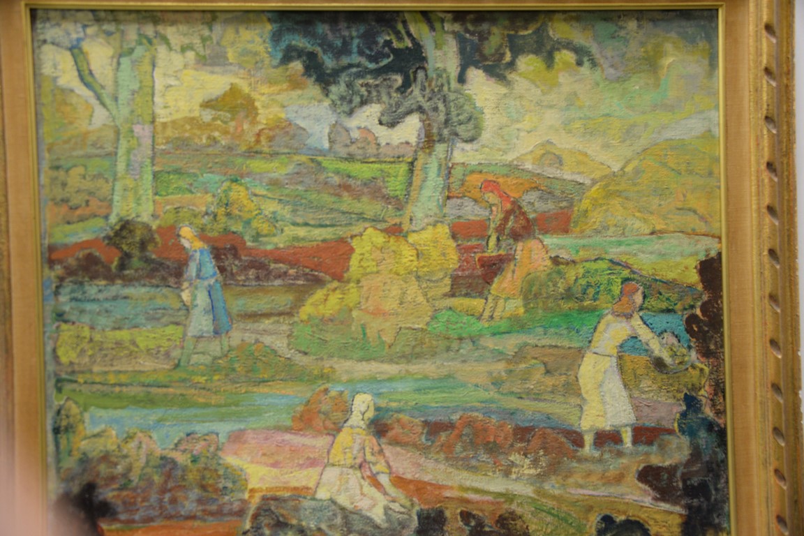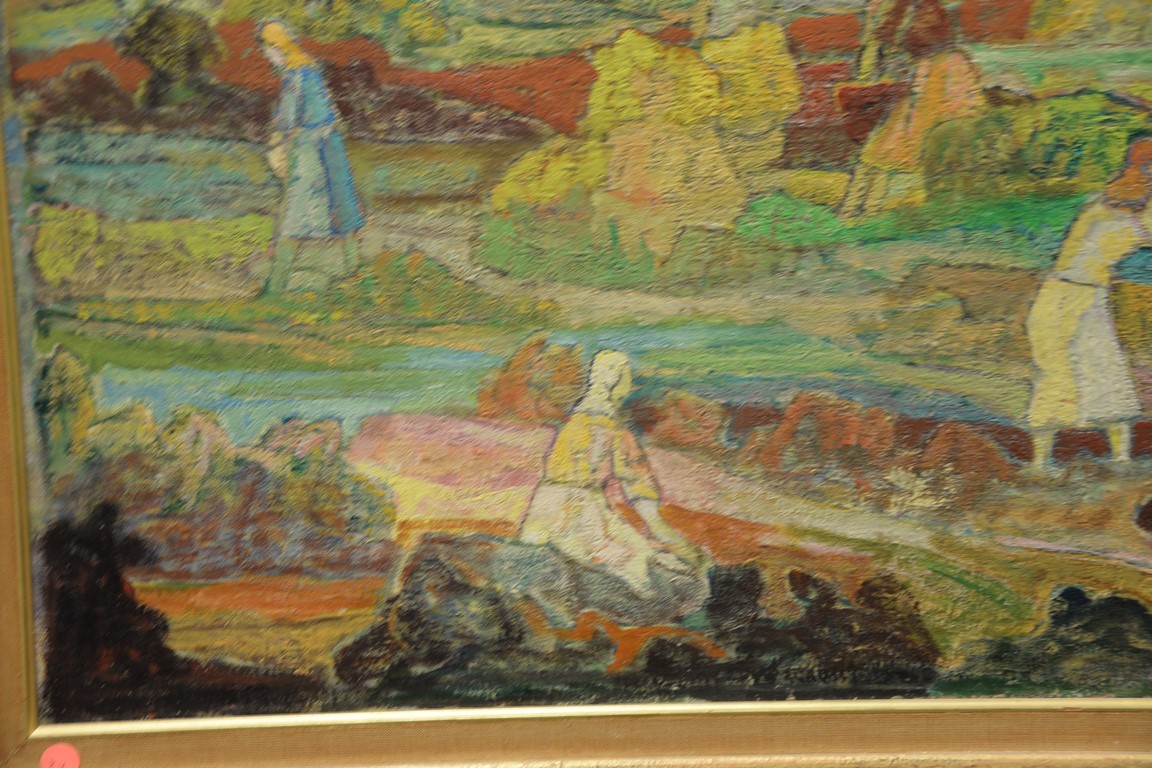 Lot 277: Attributed to Mykola Burachek 1871-1942 oil on canvas Farmer’s Landscape signed illegibly bottom center 22 1/2 x 26 1/…