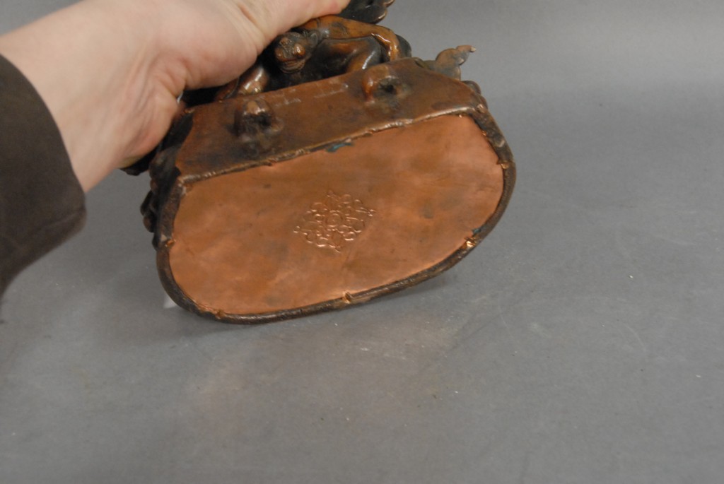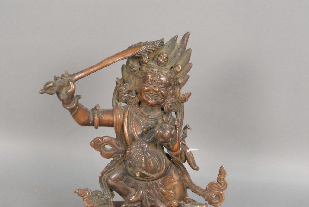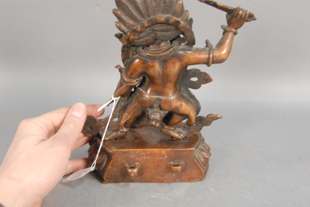 Bronze goddess figure standing on lotus base ht 10.