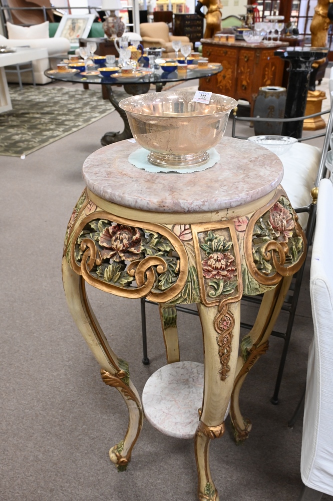 Contemporary Marble Top Tall Pedestal, height 39 inches, diameter 16 inches.