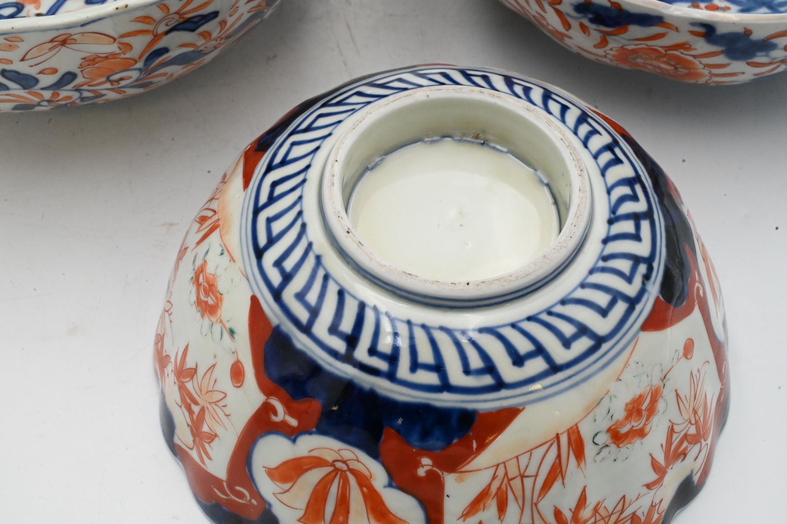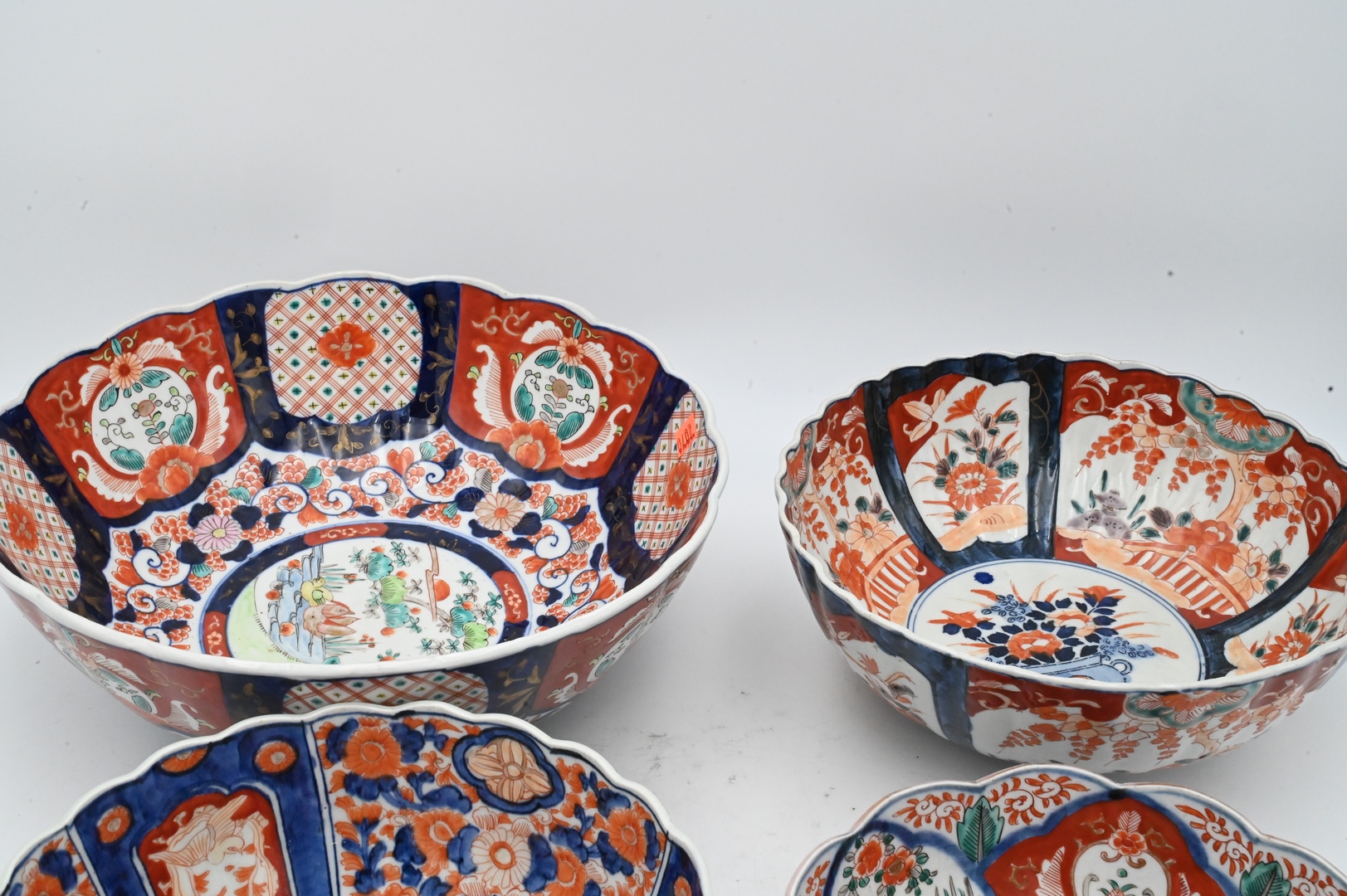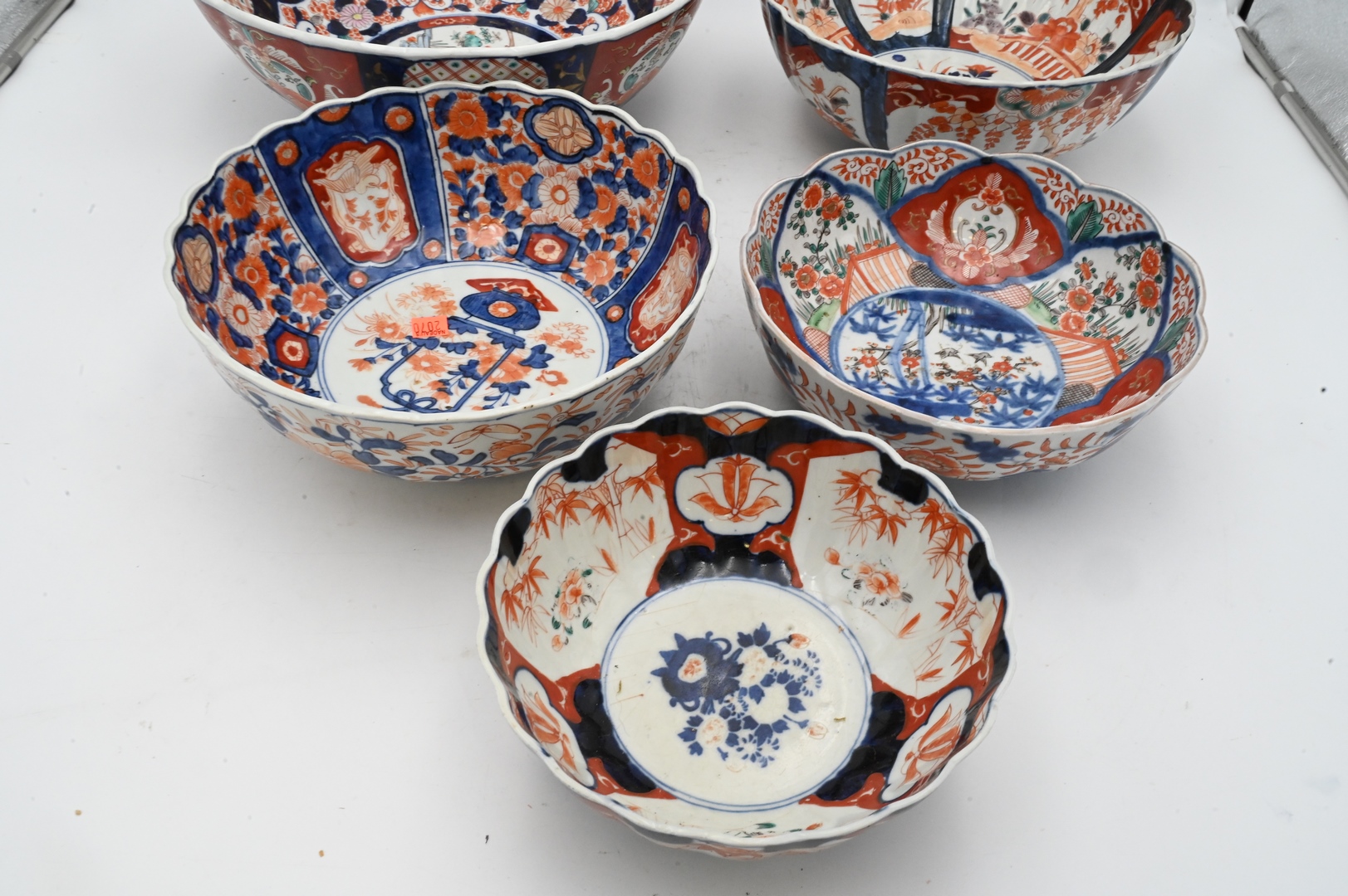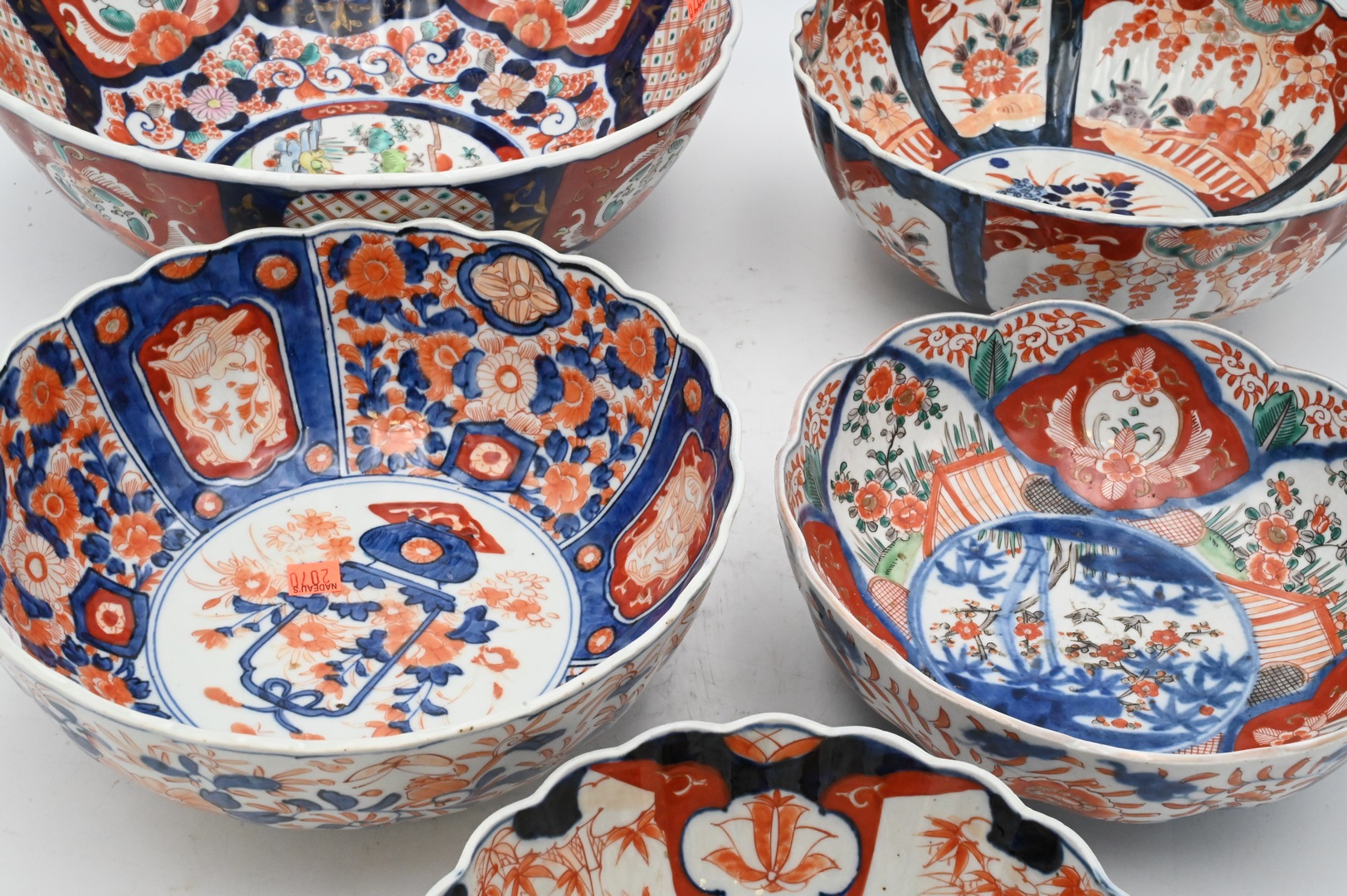 Group of Five Japanese Imari Porcelain Bowls, having scalloped rims, tallest height 5 inches.