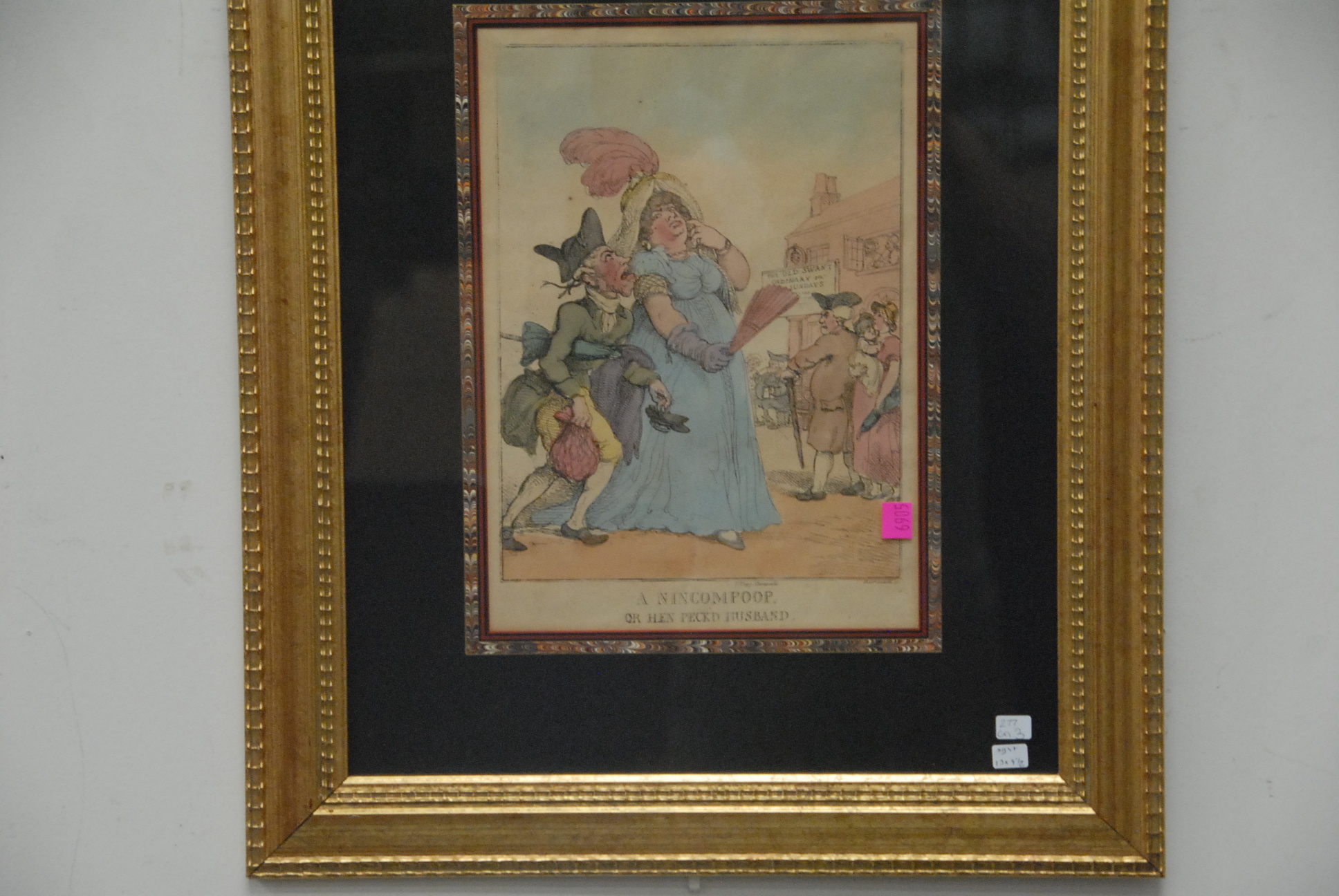 Lot 277: Group of three prints, one modern golf print 20 x 24, one Birman Gilt war boats, and Nincompoop 13 x 9 1/2.