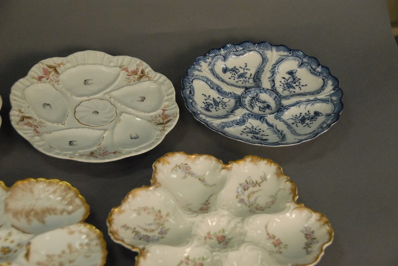 Lot 277: Nine oyster plates, dia. 8 in. to 9 1/2 in.