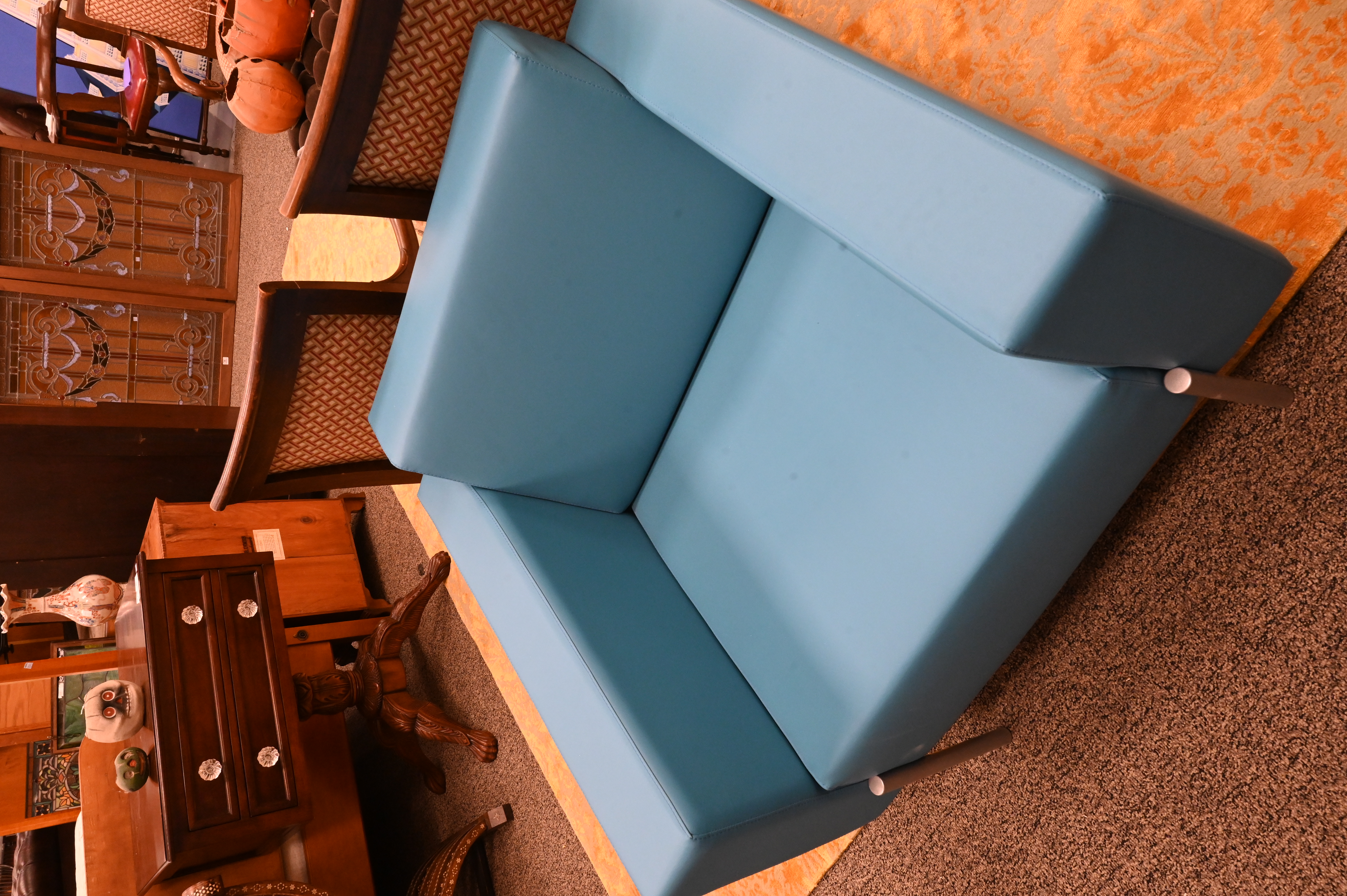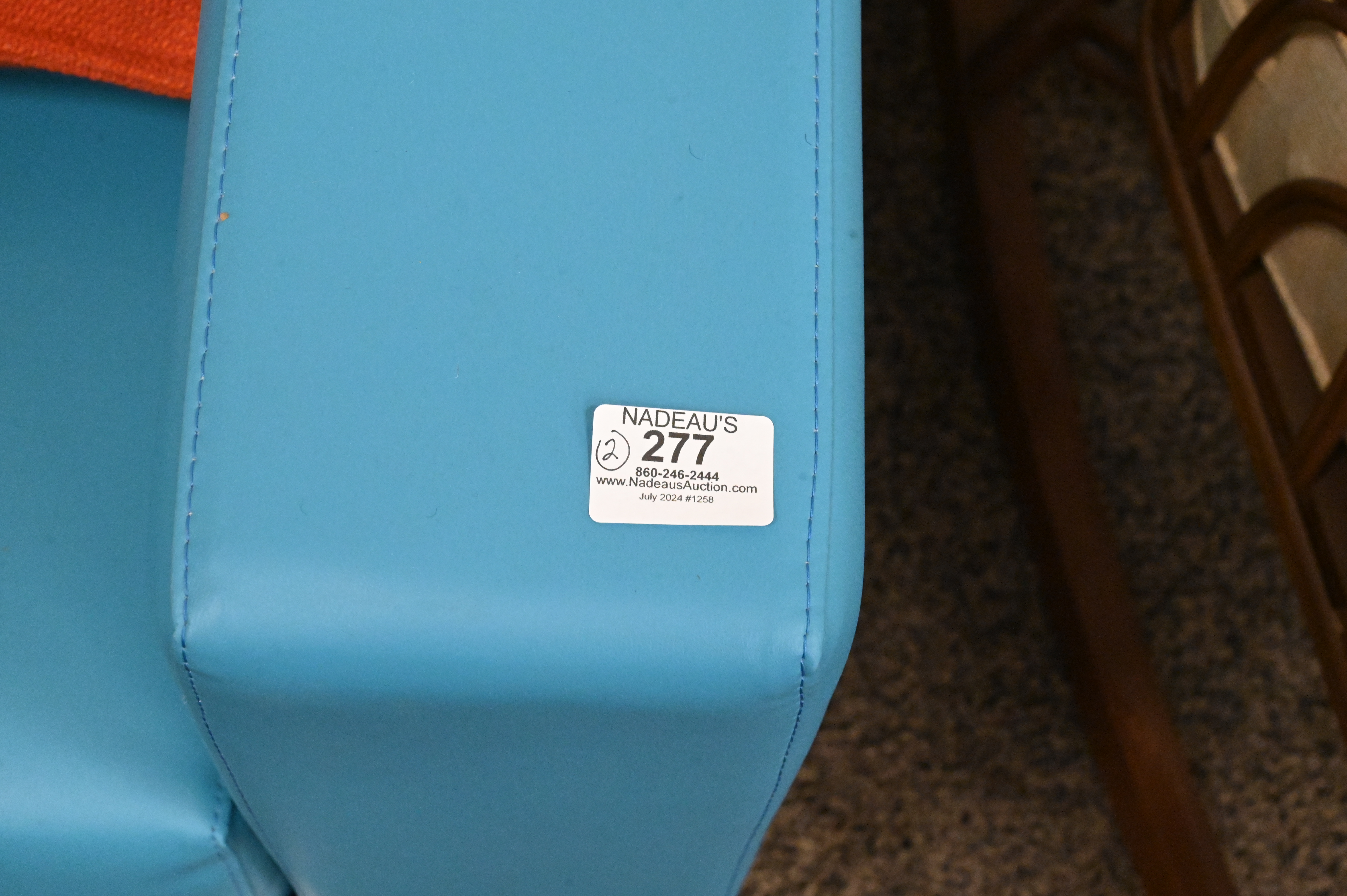 Lot 277: Pair of Blue Leather Upholstered Club Chairs