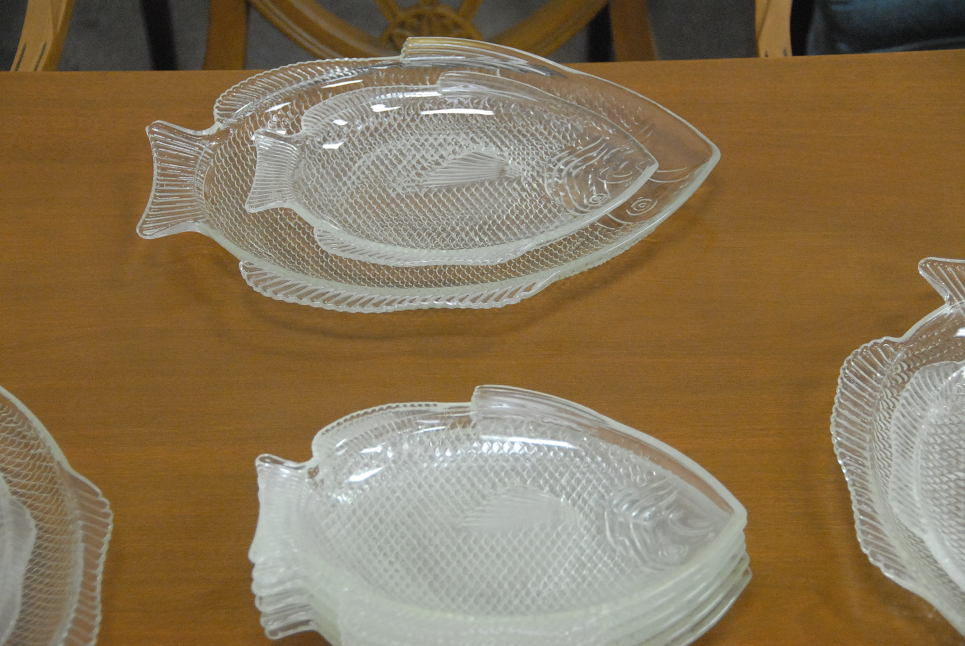 Two box lots of fish plates, two sizes, 12 of each. 15 & 11.