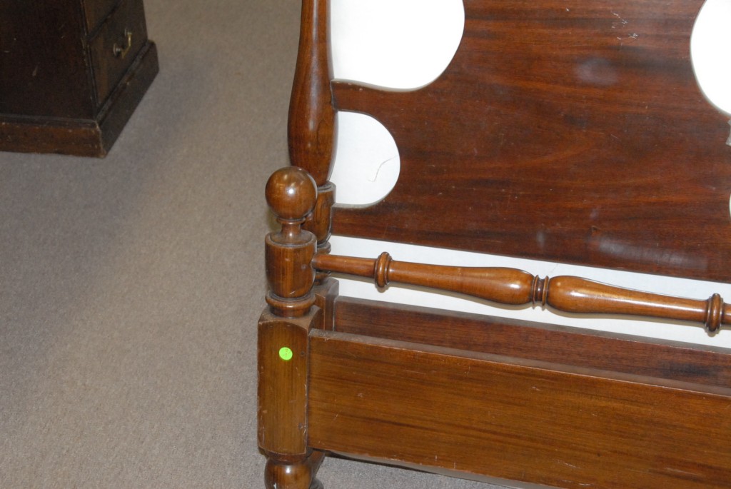 Custom child’s four post mahogany bed.