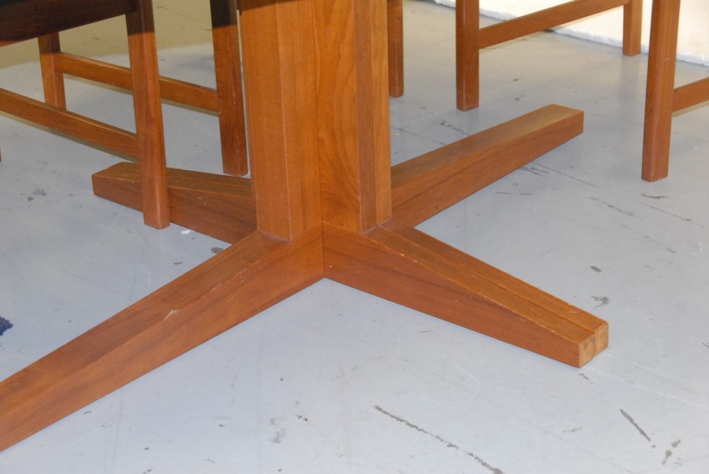 Danish modern dining table oval form, ht. 28, lg. 75, plus two 20 leaves, opens to 115.