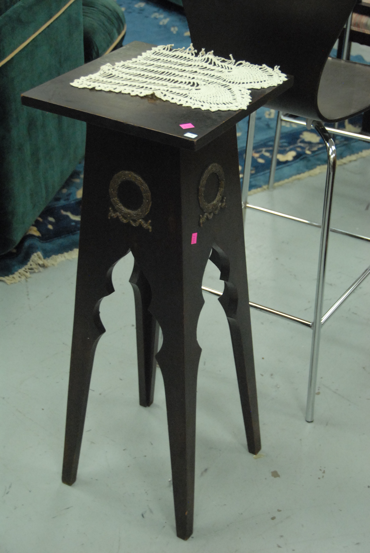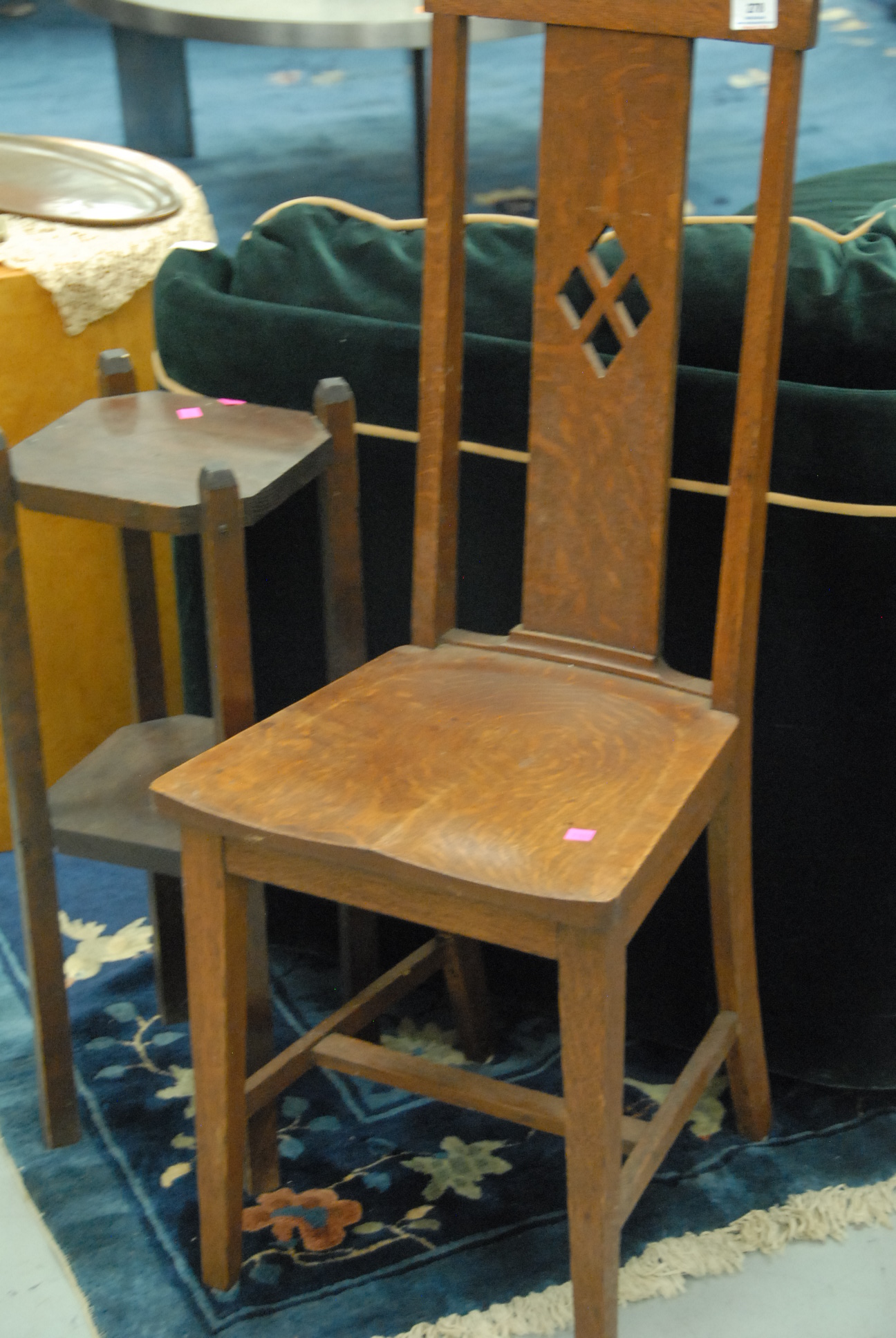 Group of Arts & Crafts style pieces to include oak chair and two stands.