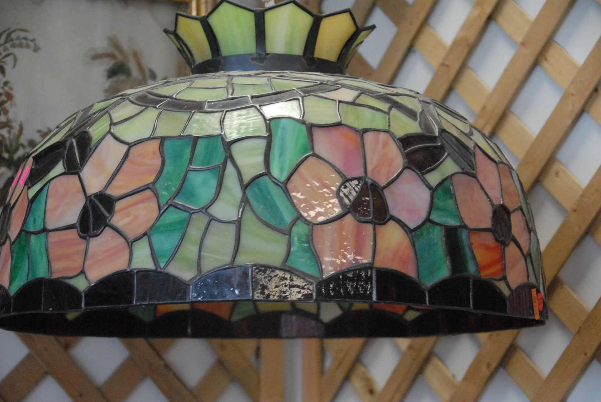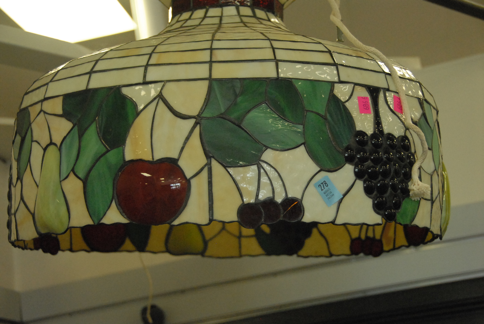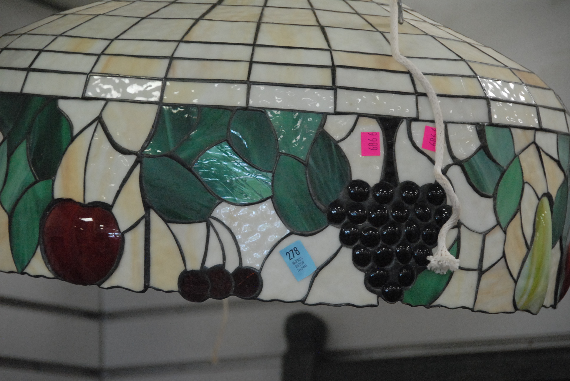 Two leaded glass hanging lights.