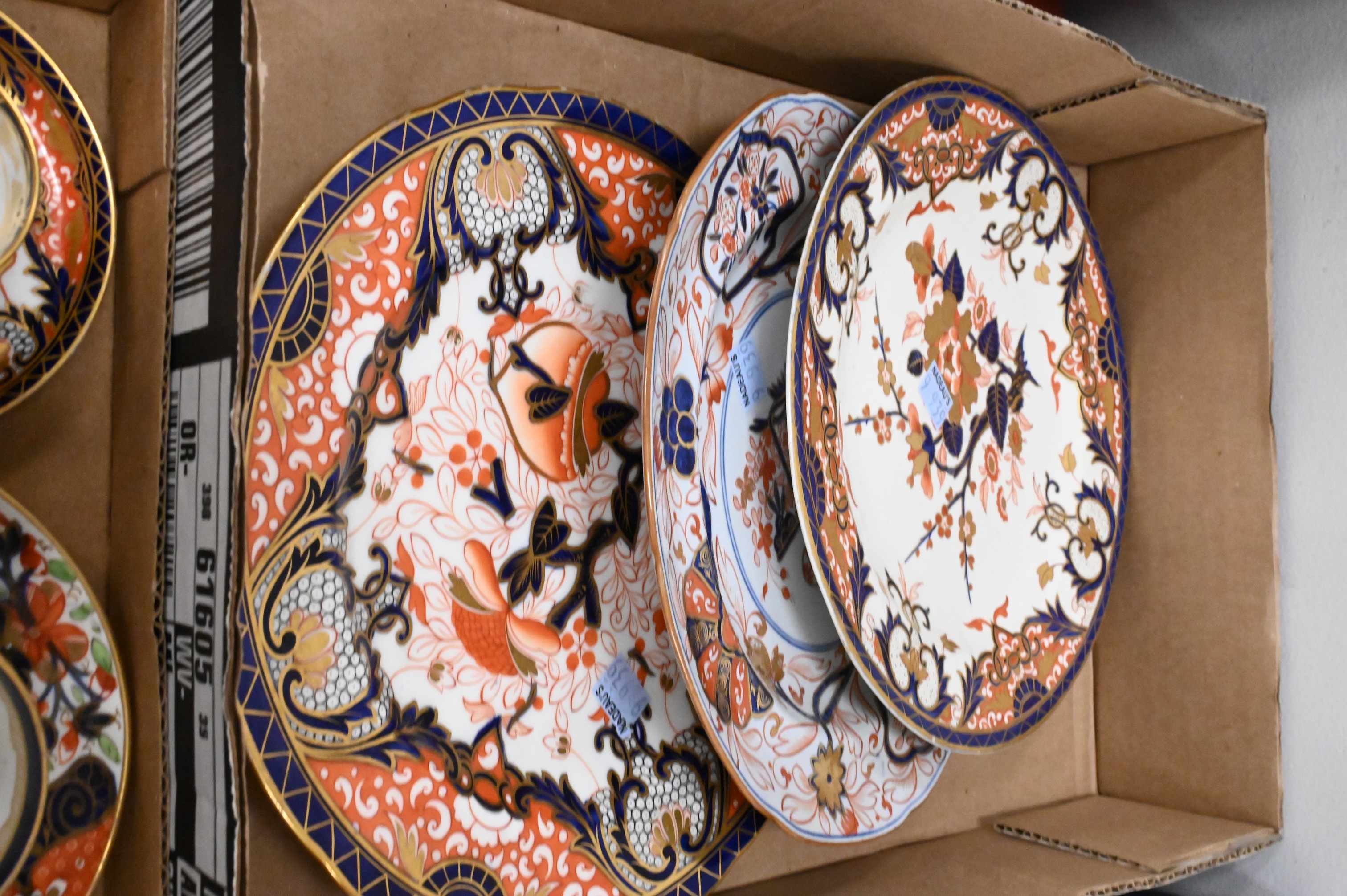 Spode imari pattern no.2283 plate, Royal Crown Derby “Kings” imari plate with old Sotheby’s label, Royal Crown Derby “Old Imari” plate along with several teacups and saucers