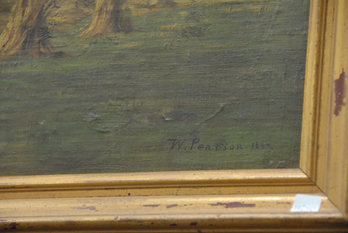 William Pearson late 19th century HAYSTACKS oil on canvas signed lower right W. Pearson 1882 15 x 25