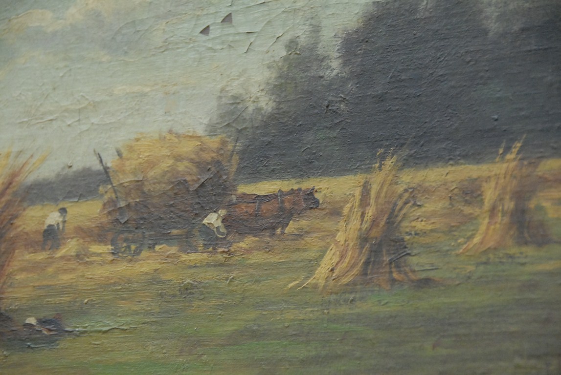 Lot 278: William Pearson late 19th century HAYSTACKS oil on canvas signed lower right W. Pearson 1882 15 x 25