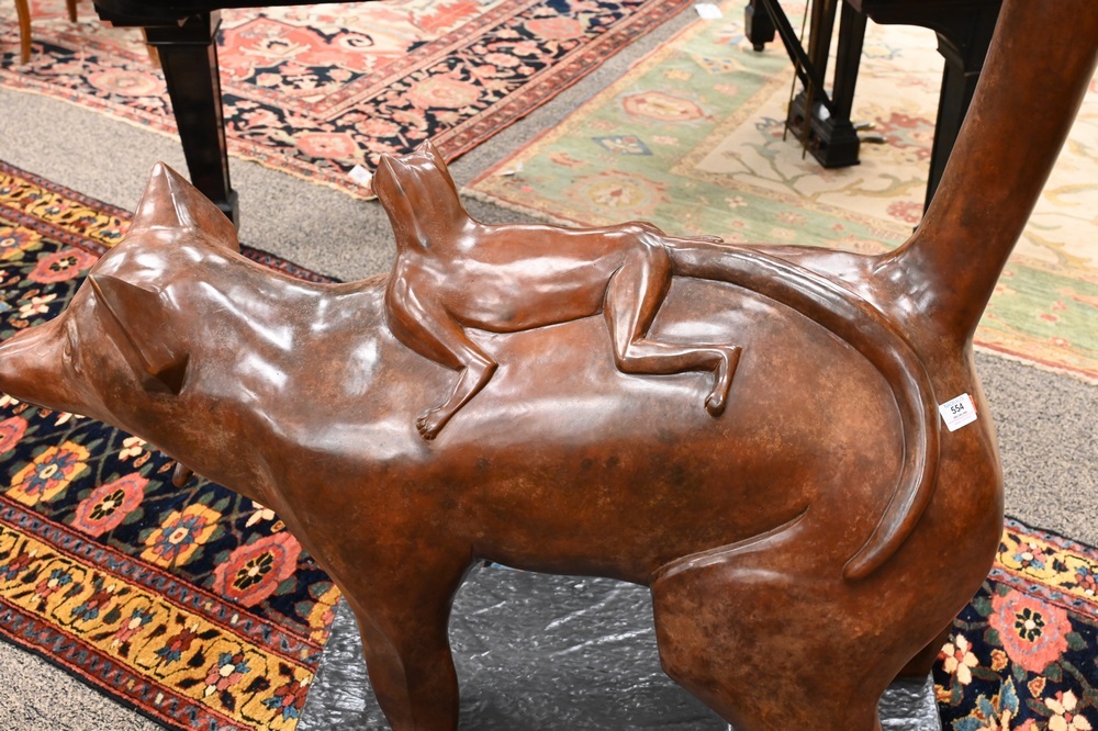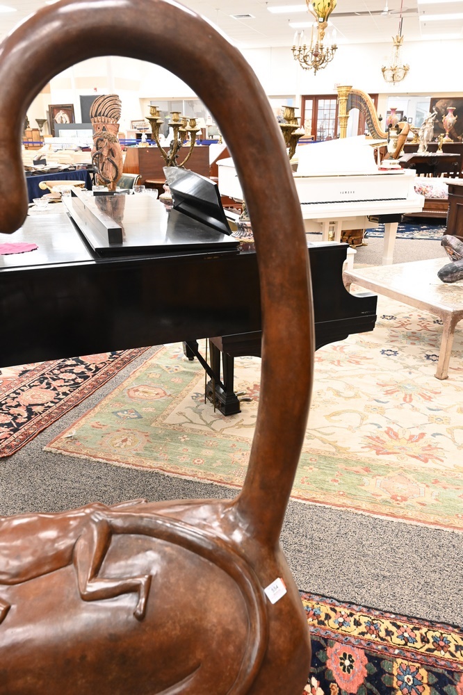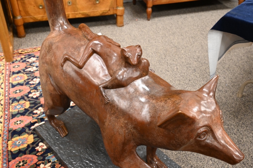 Lot 278A: Large Bronze Sculpture, Lemur carrying its young on her back, Metropolitan Galleries copy, height 60 inches, length 44 inches, width 17 1/2 inches.