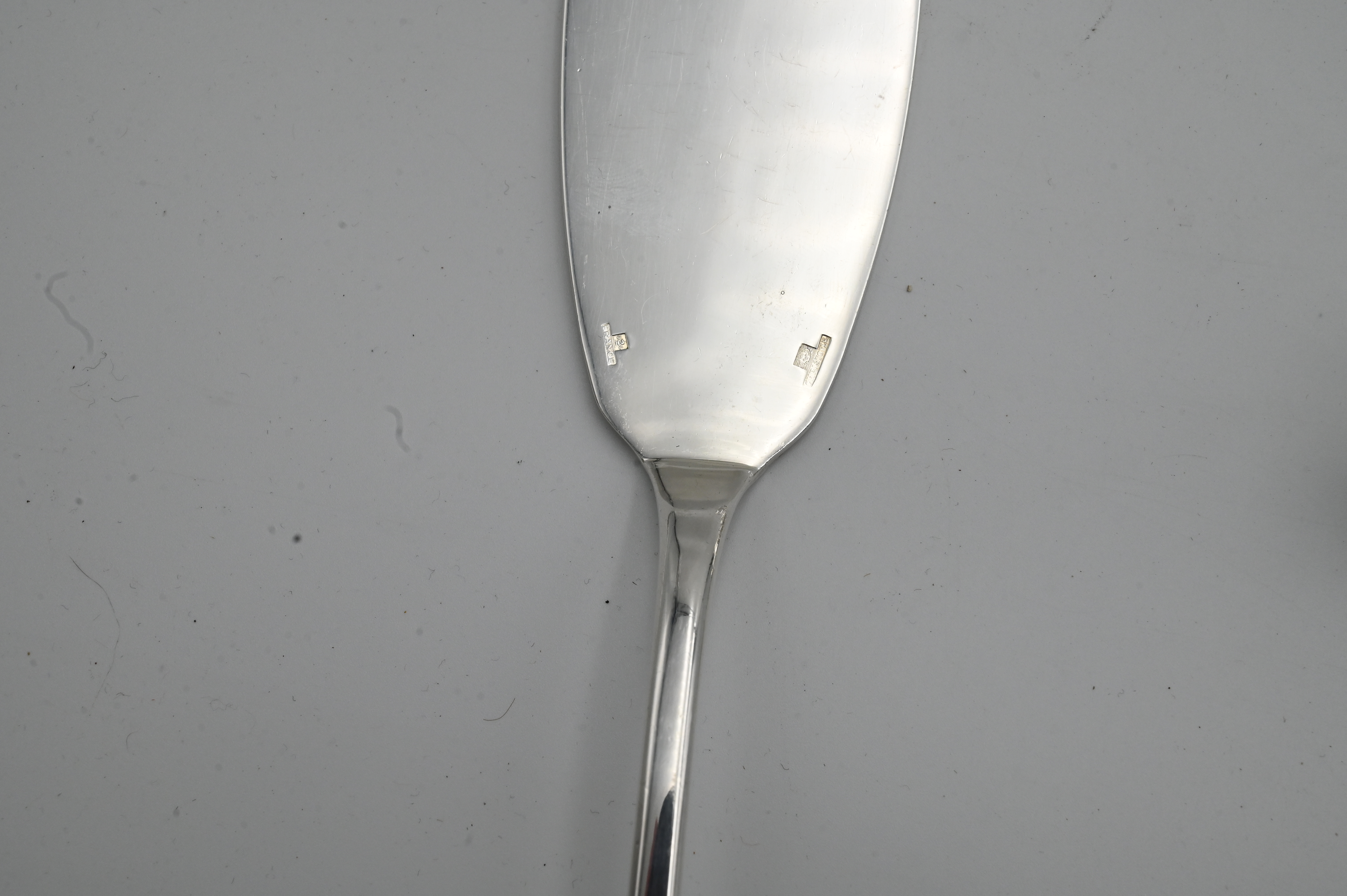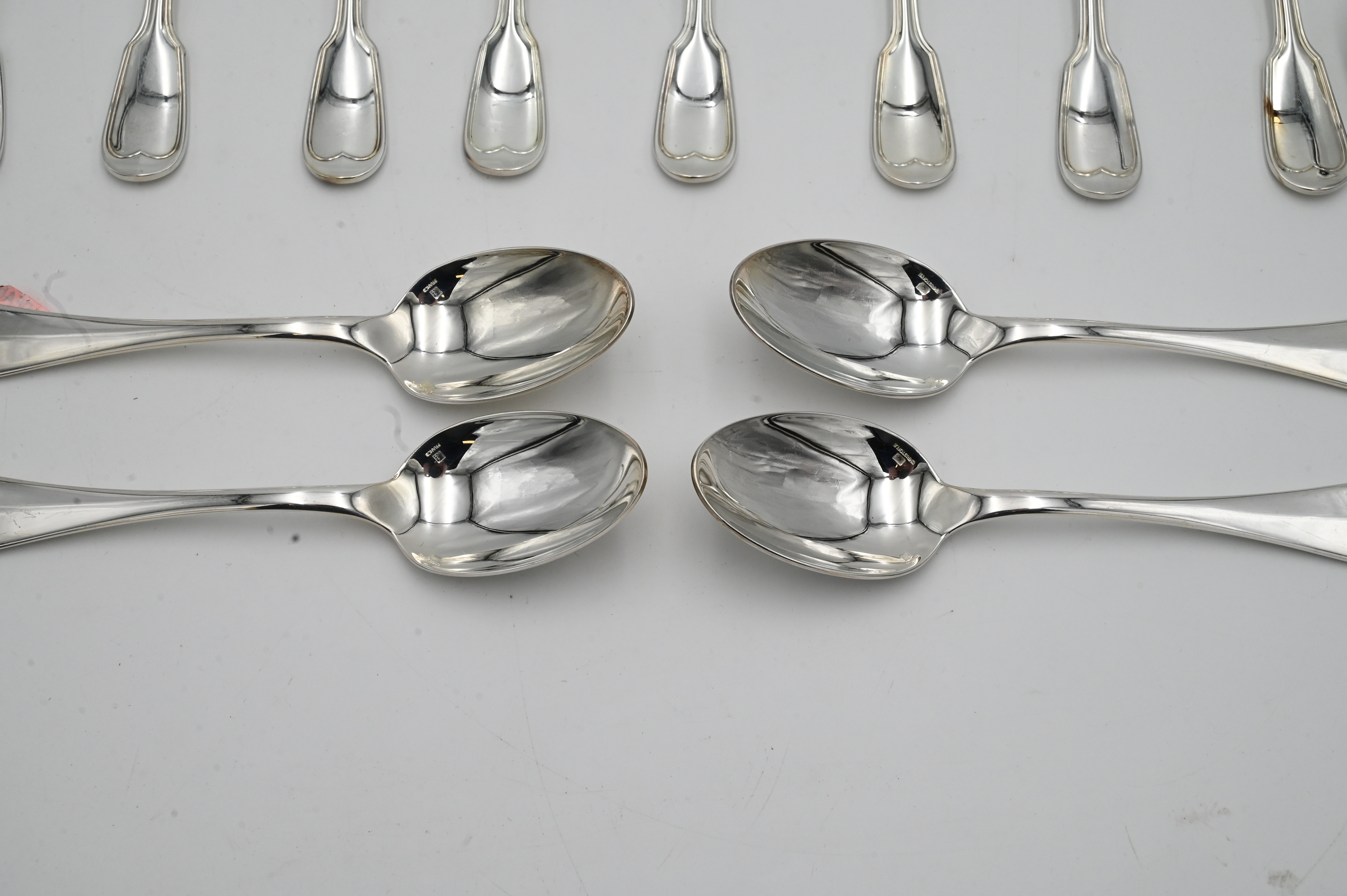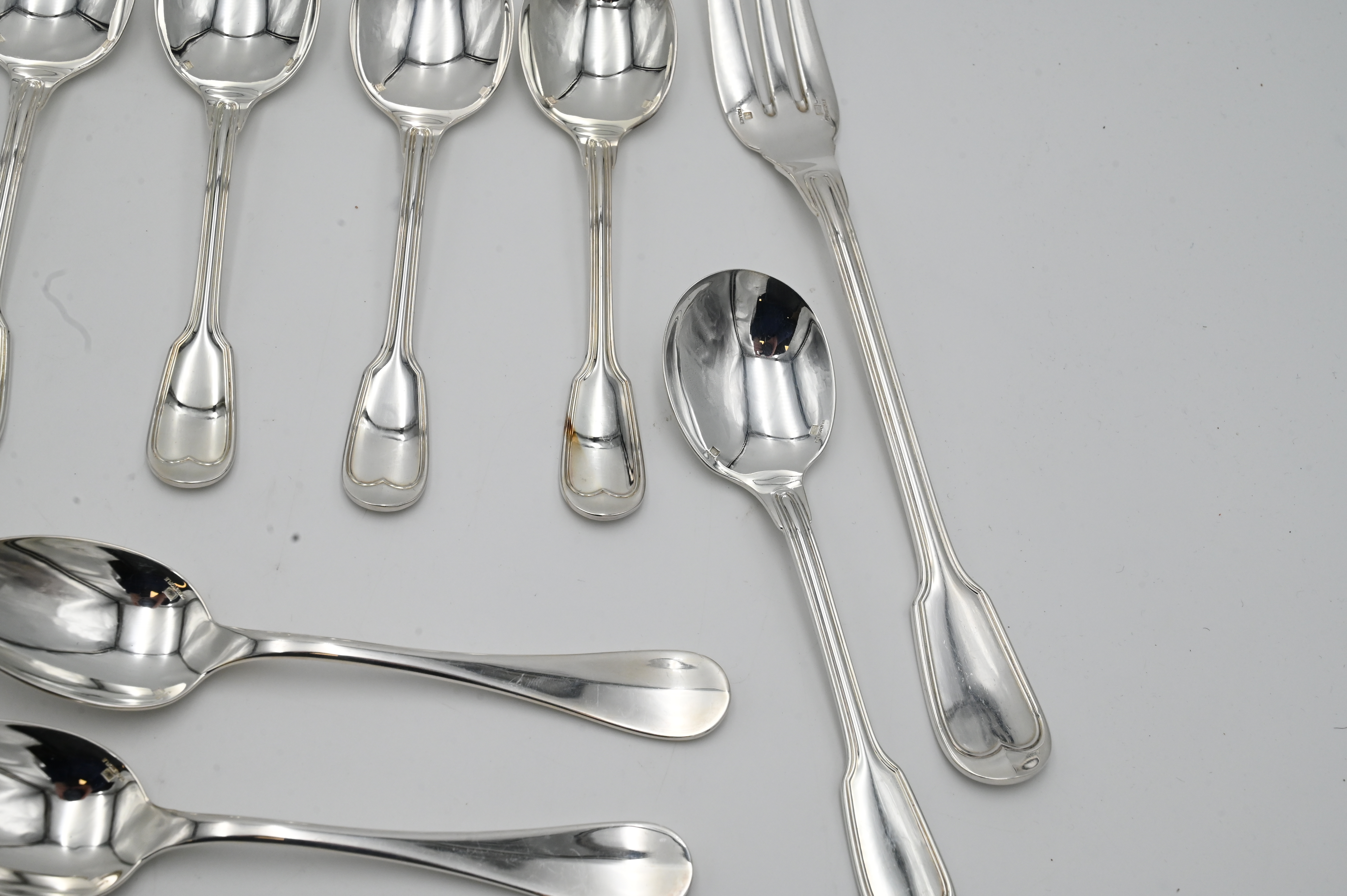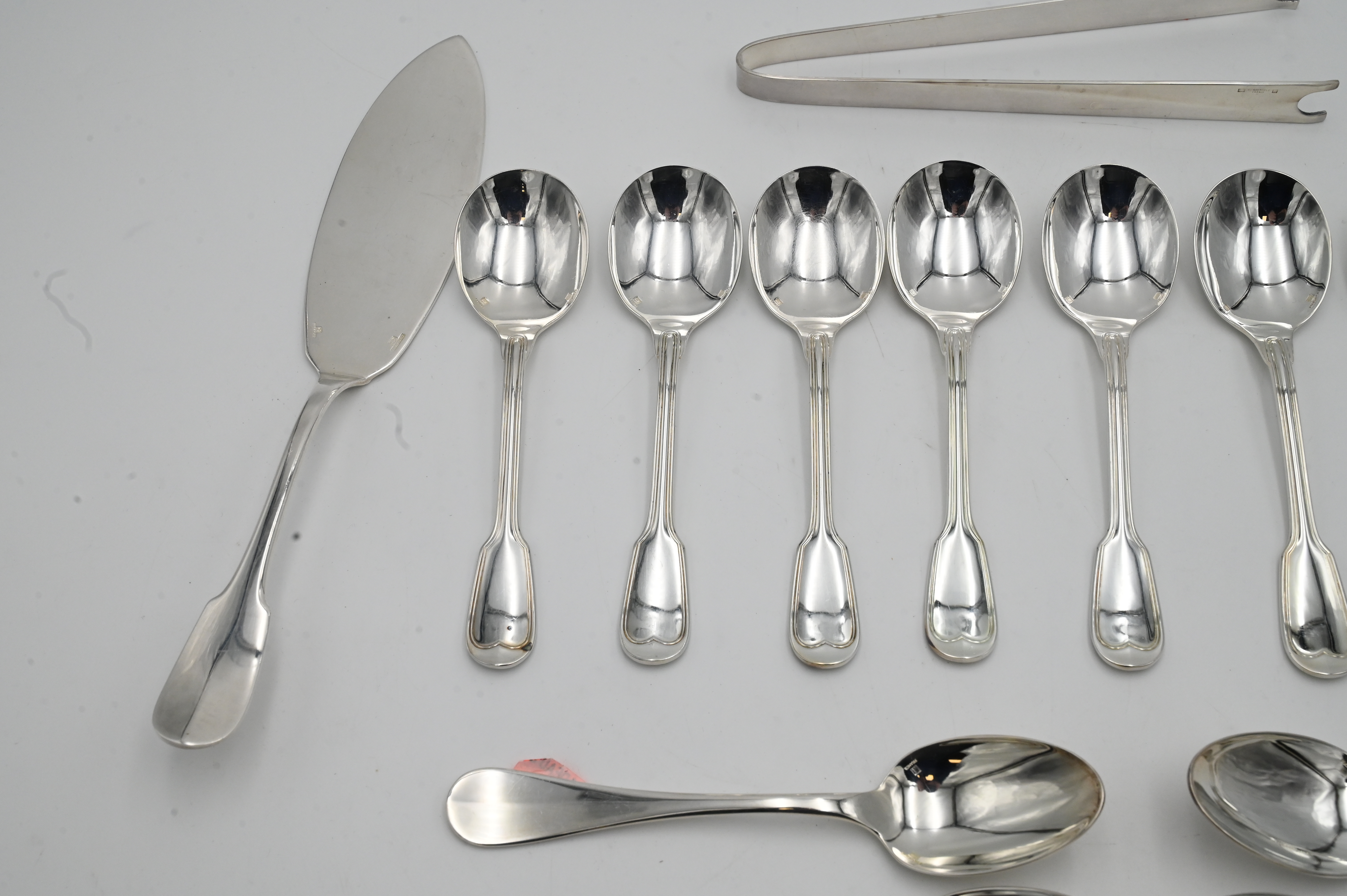 17 Piece Christofle Flatware Set, to include a set of 9 soup spoons, 4 teaspoons, a pair of tongs, along with 2 serving pieces, fish fork and server.