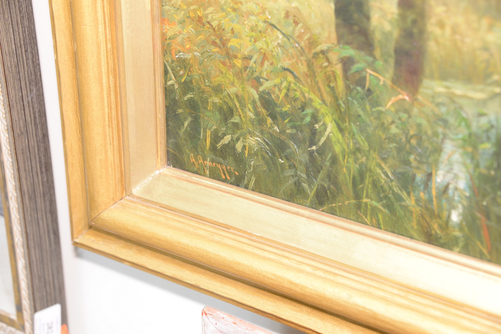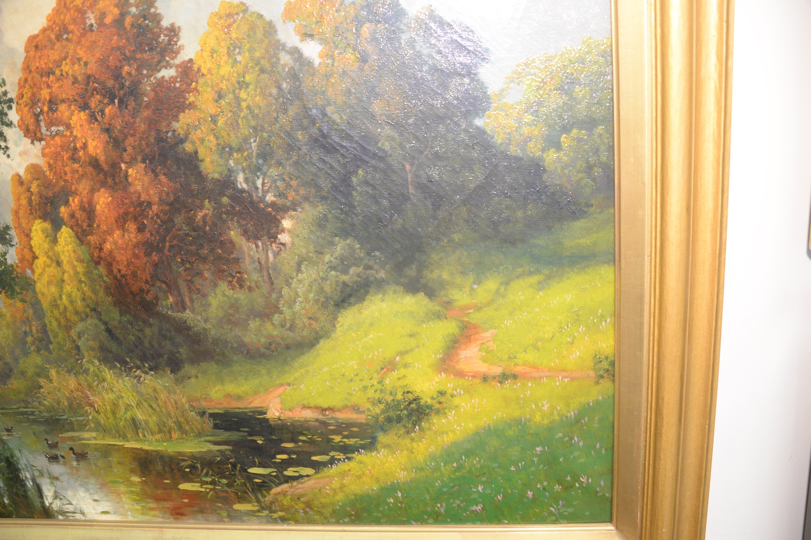 Lot 279: Alois Arnegger Austrian, 1874 – 1963 Autumn Ducks in the Pond oil on canvas signed lower left 25 x 37 1/2