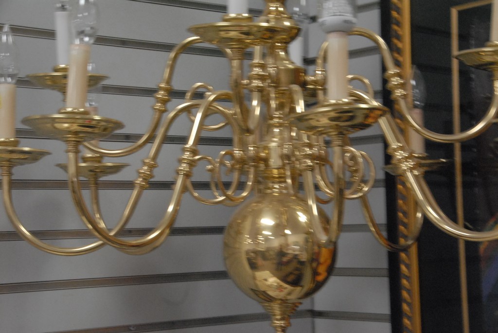 Brass hanging chandelier, 12 light.