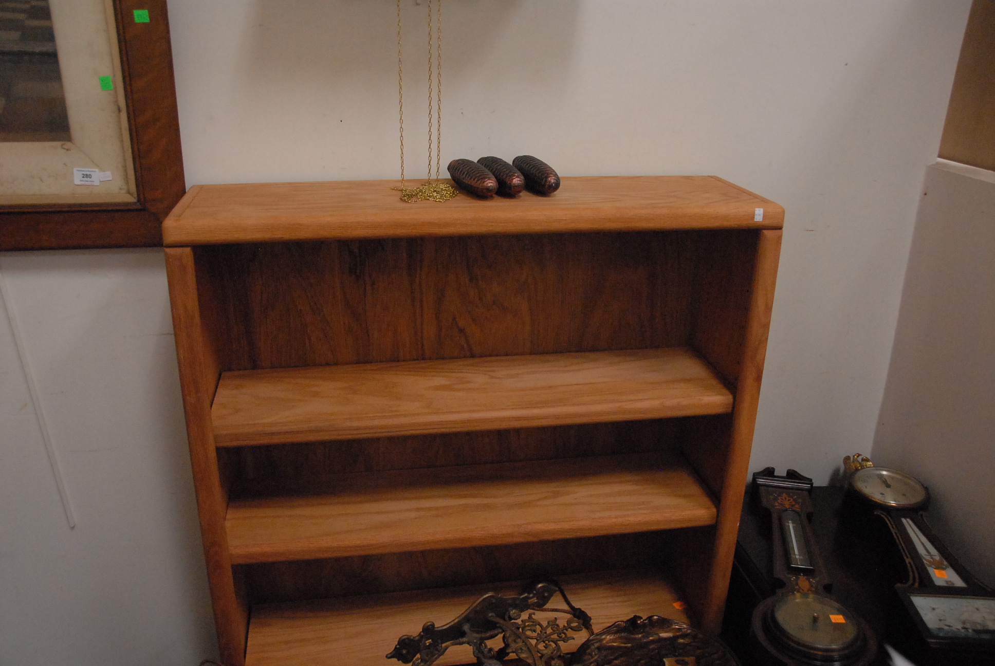 Lot 279: Five piece lot to include cedar chest, bookcase, coffee table, small drop leaf table, and child’s chair.