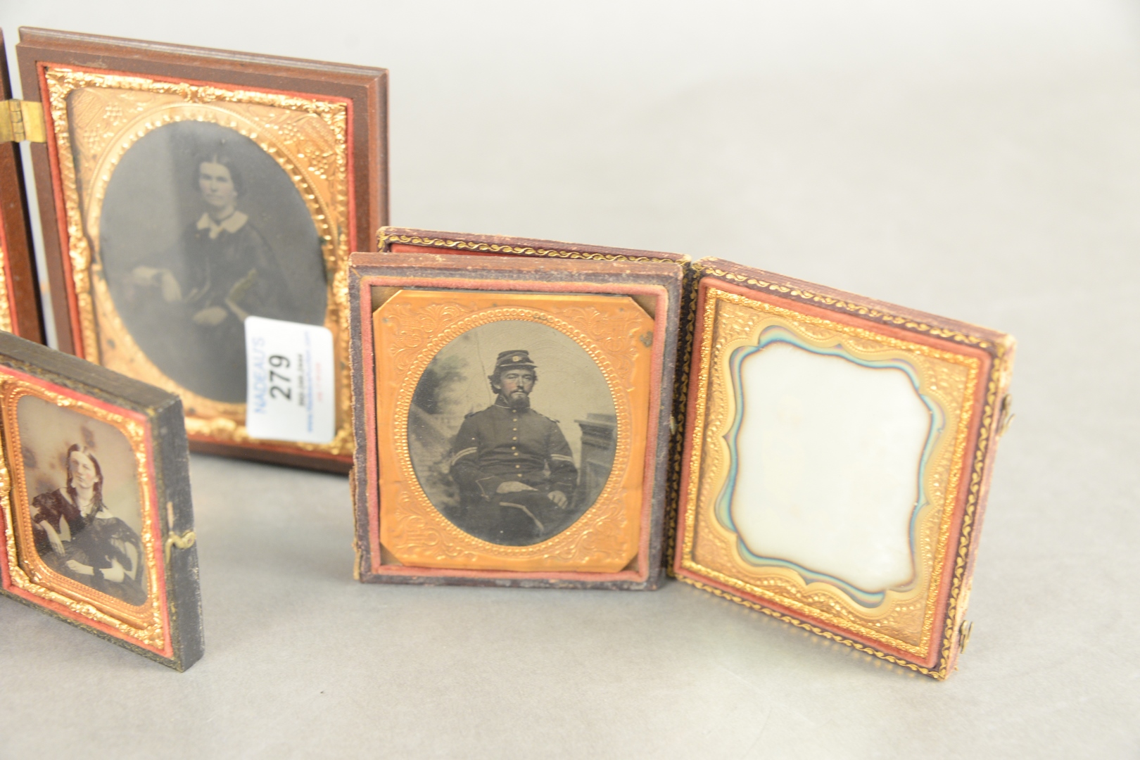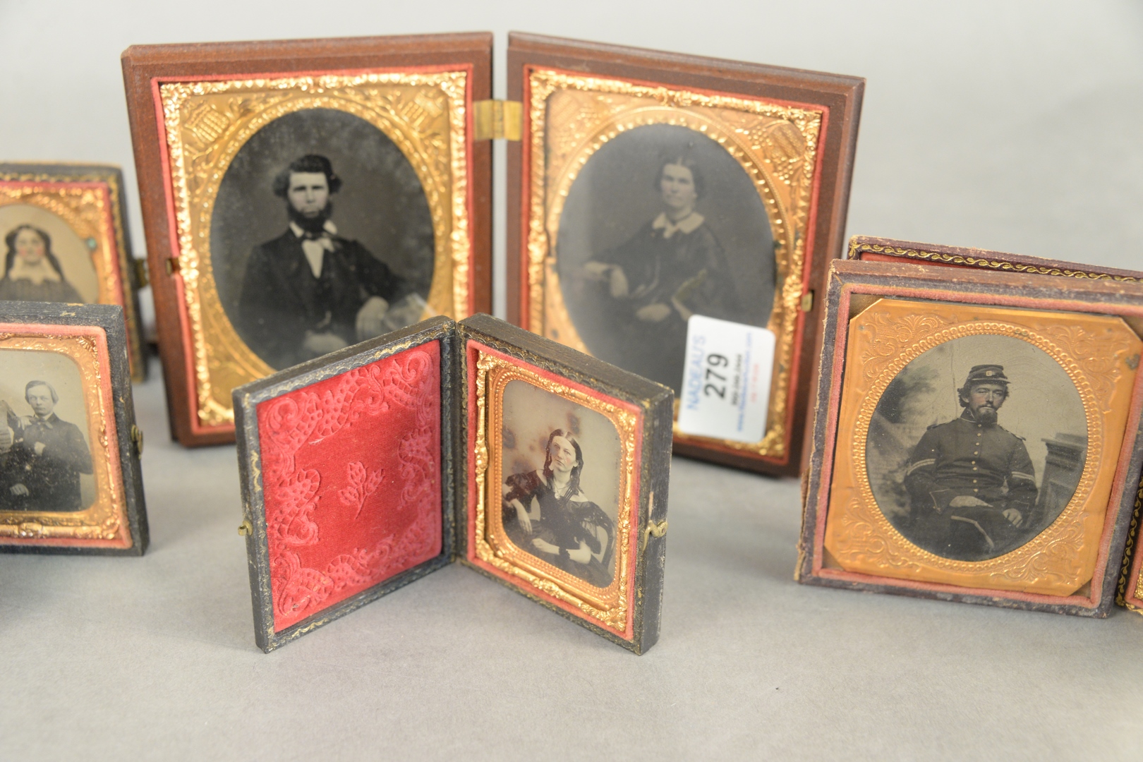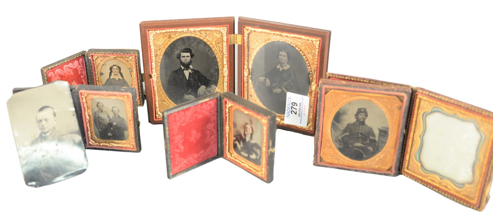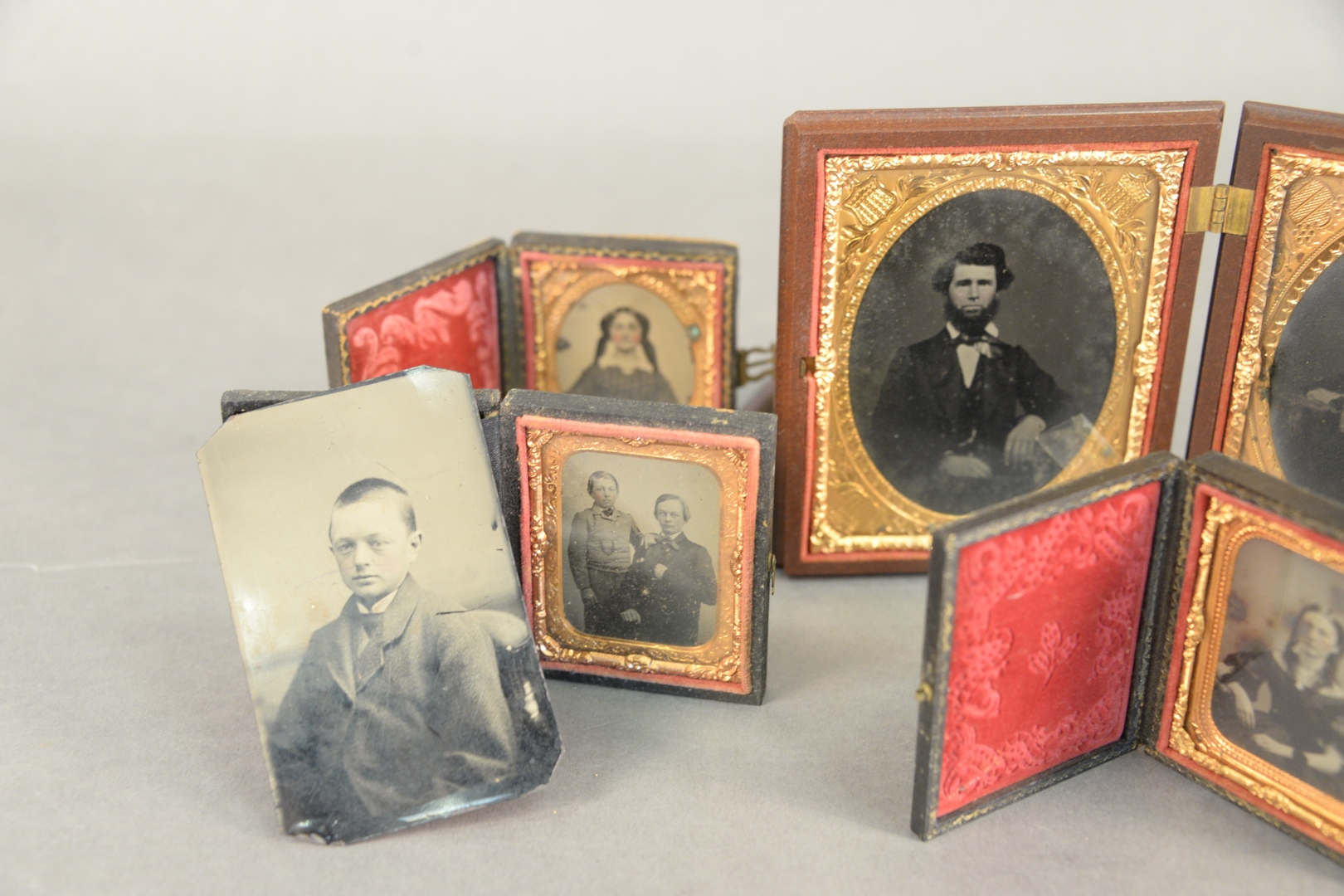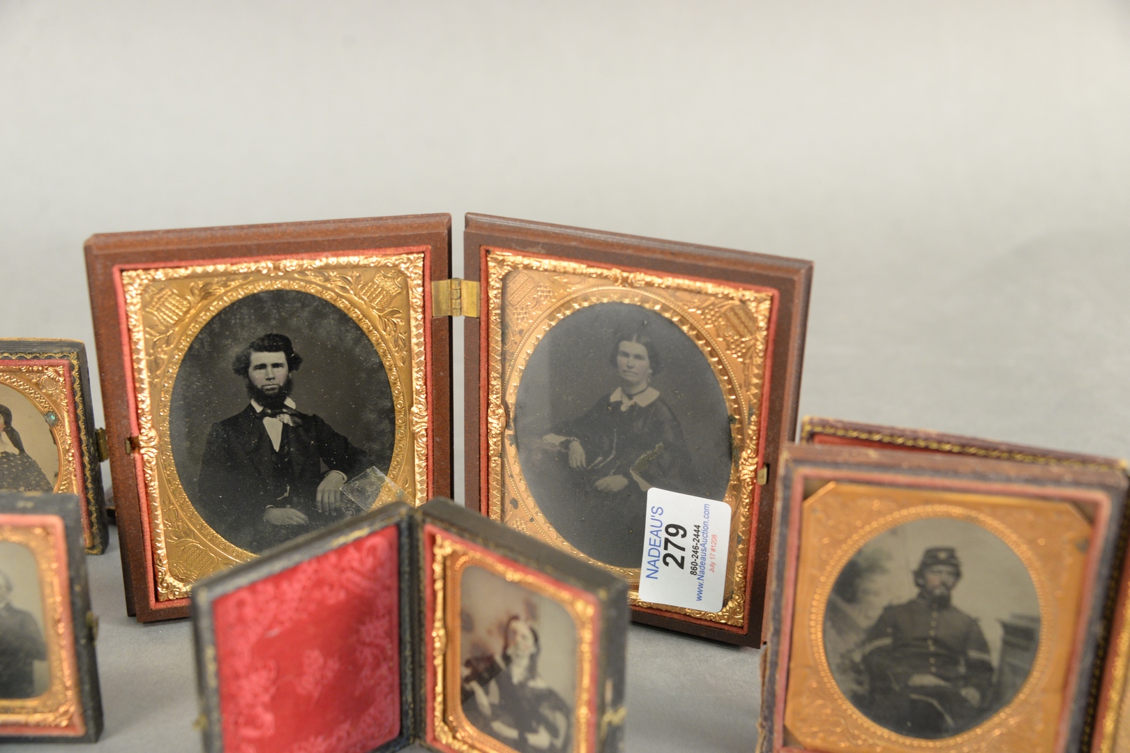 Lot 279: Group of Eight Tintypes and Daguerreotypes, to include Civil War soldier and James Collins Gunsmith for Colts. Provenance: Estate of James Wadhams
