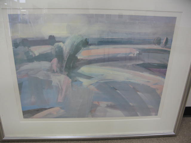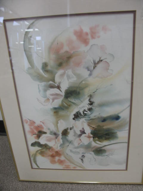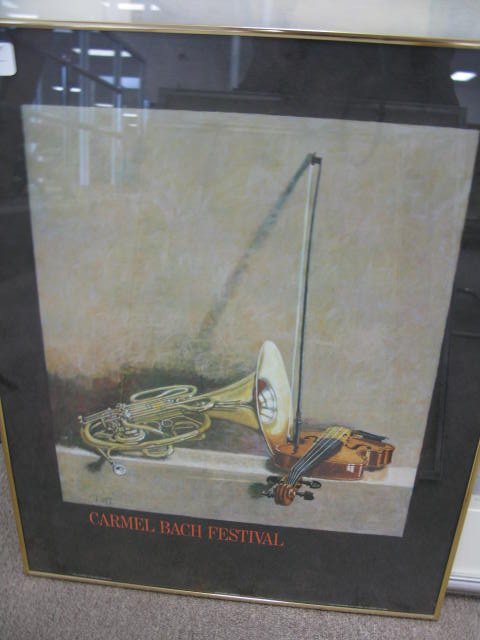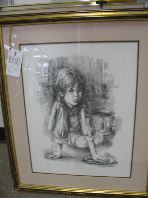 Group of five pieces, two black and whites of children, one of flowers, one poster and one modern art