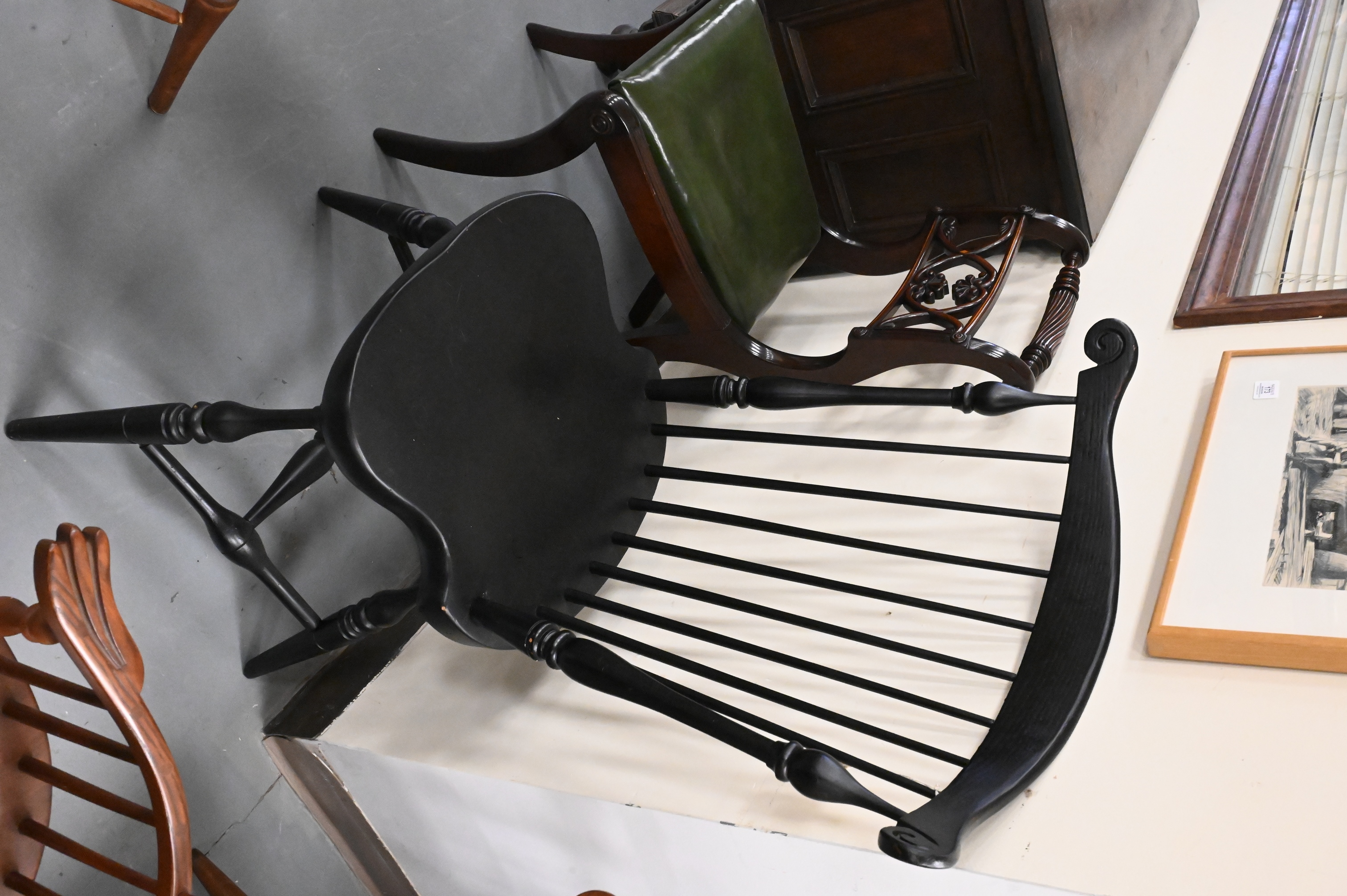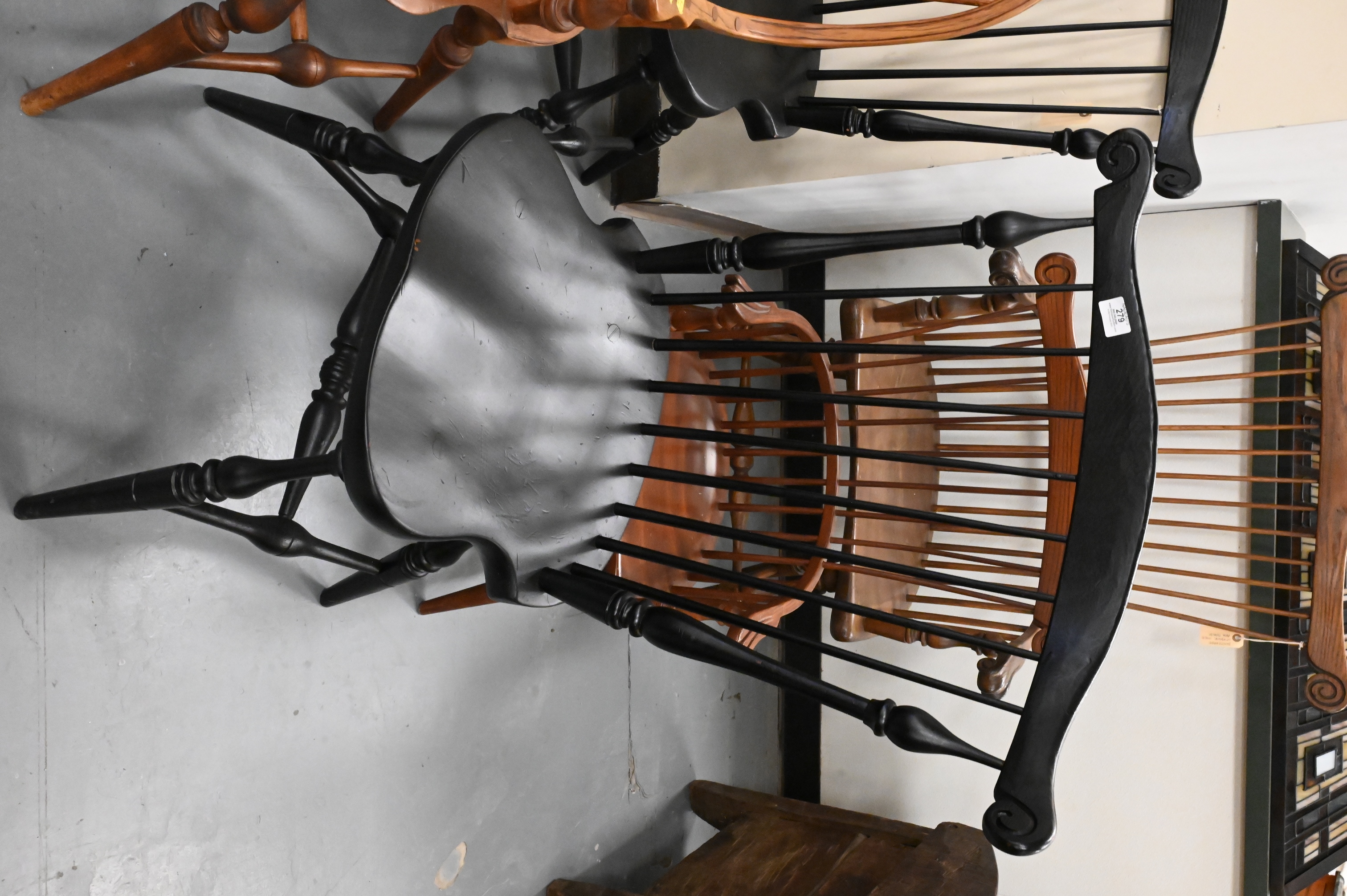 to include pair in black paint, a Frederick Duckloe and Son Colonial reproduction children’s chair, one oak great chair