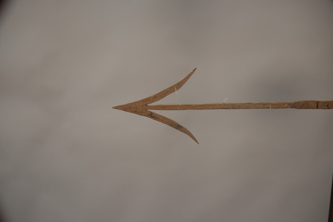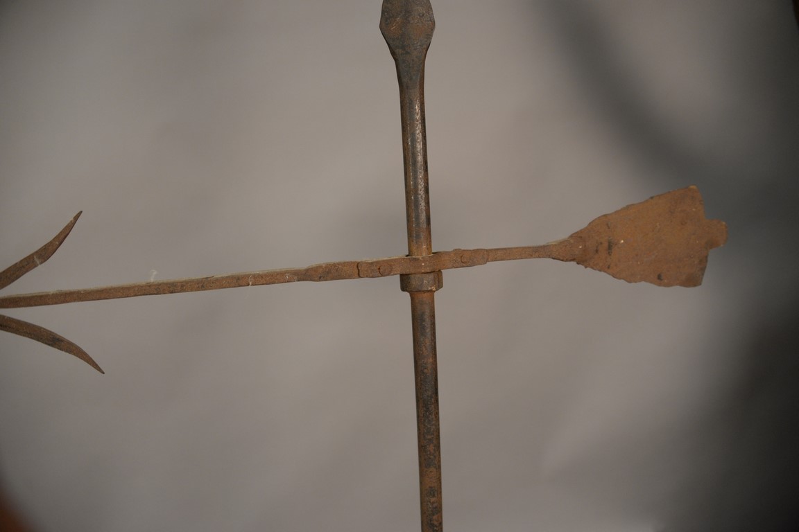 Iron weathervane, arrow design with arrow directional. ht. 69in., wd. 39in.