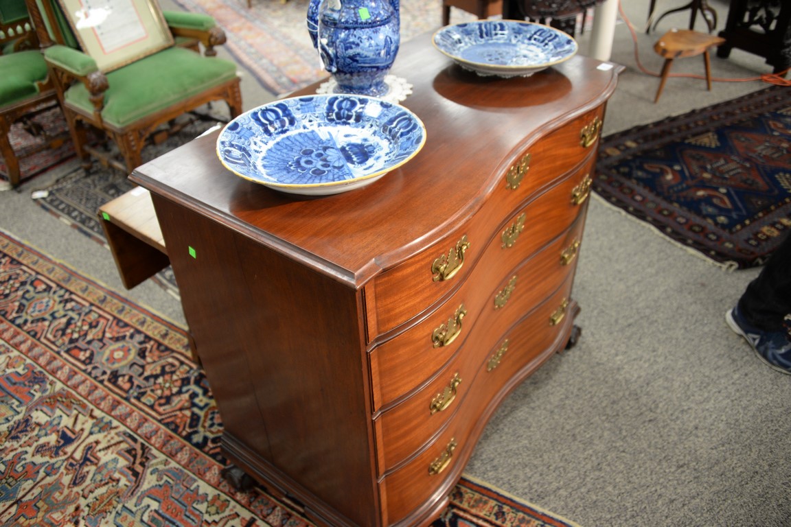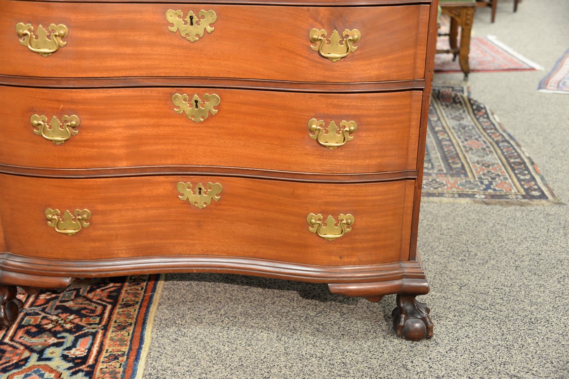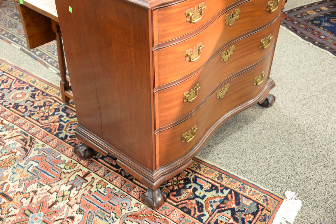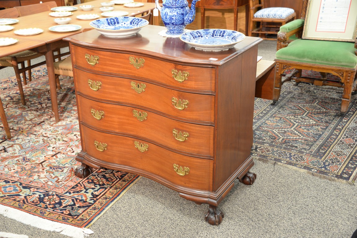 Lot 279: Mahogany chest having serpentine top over four conforming drawers all set on ball and claw feet, probably Eastern Connecticut circa …
