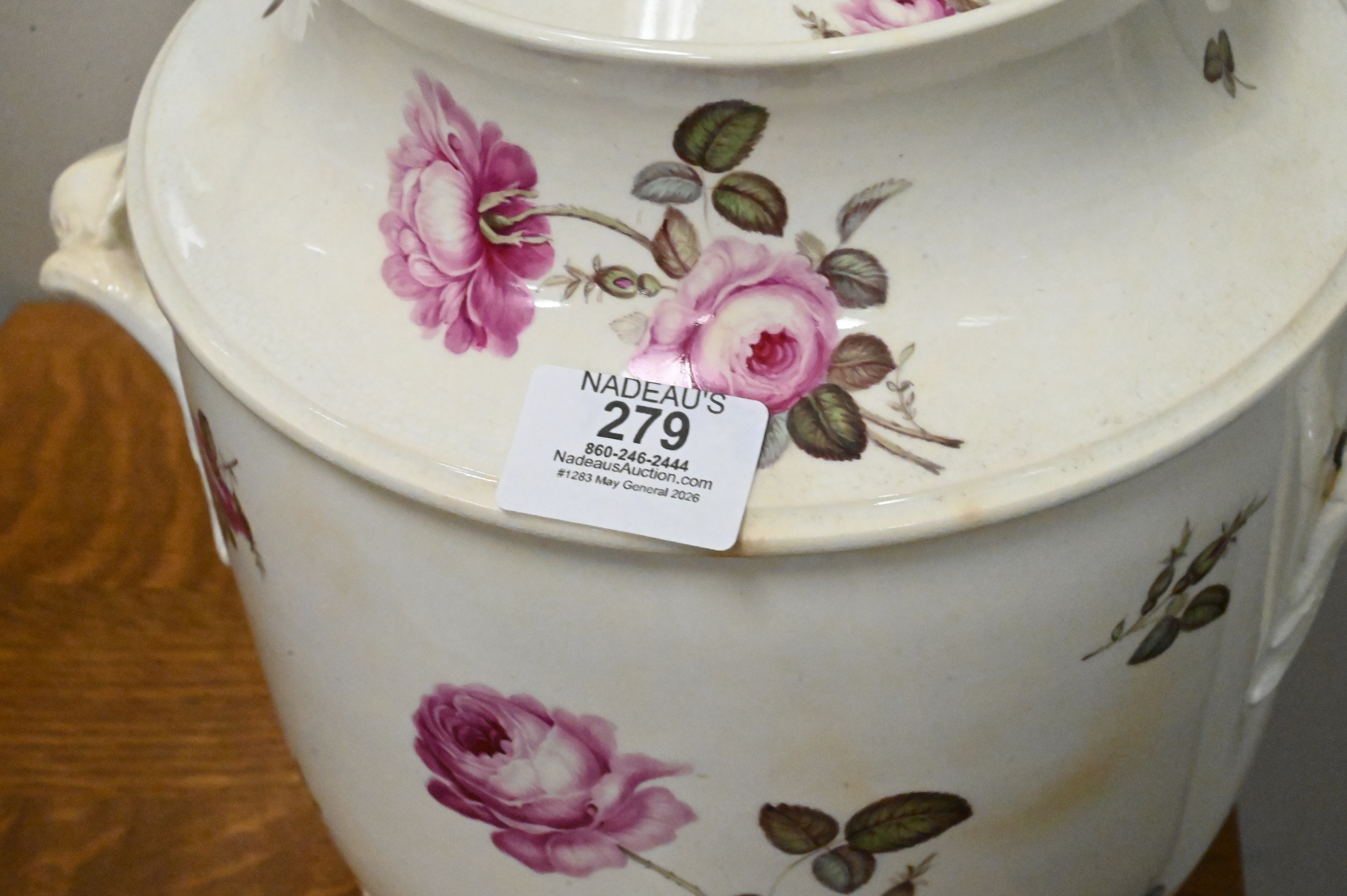 Lot 279: Pair of English Porcelain Floral-Decorated Fruit Coolers and Covers
