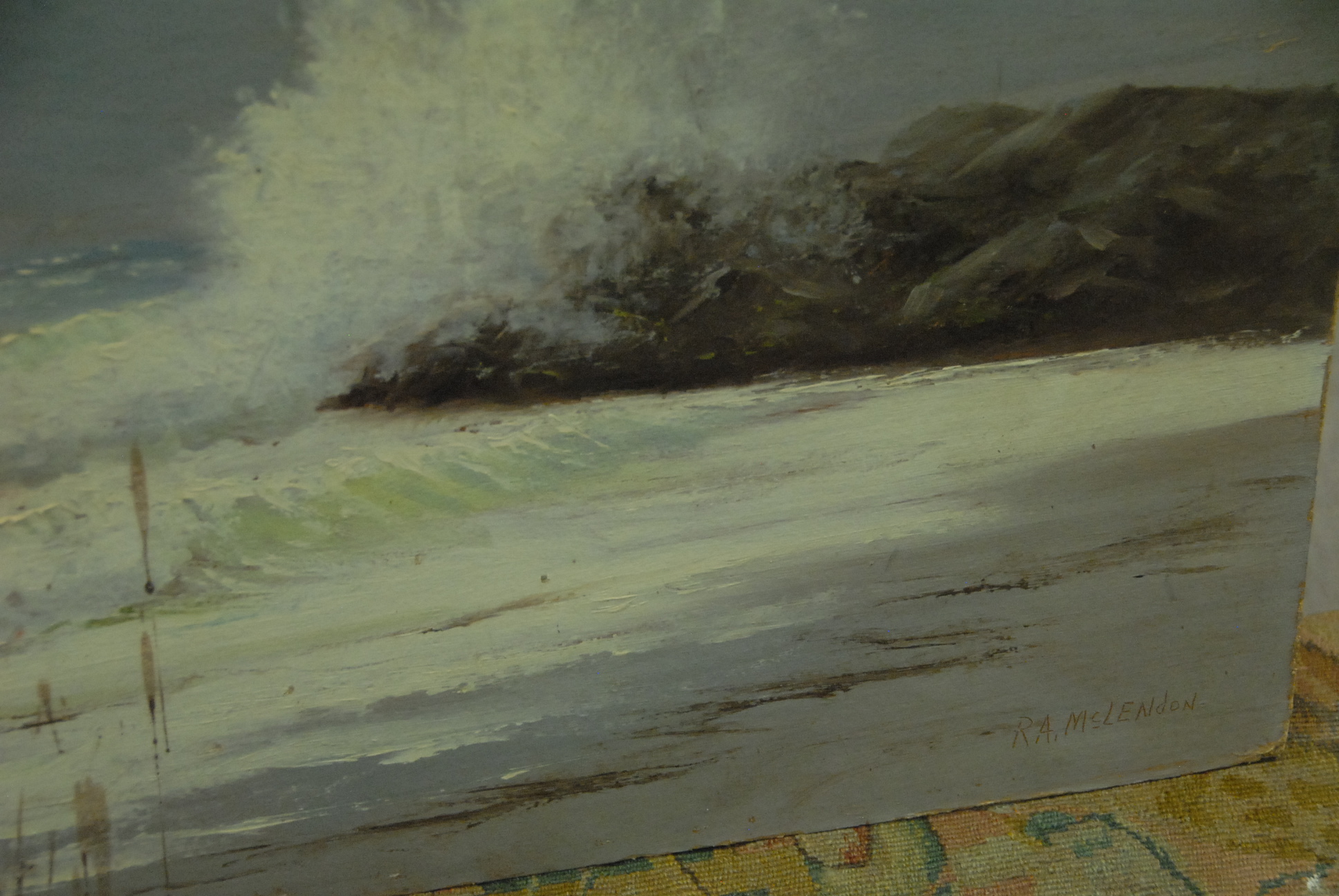 Roy A. McLendon 1960-1980 Crashing Waves oil on board signed lower right A.A. McLendon 24 x 36