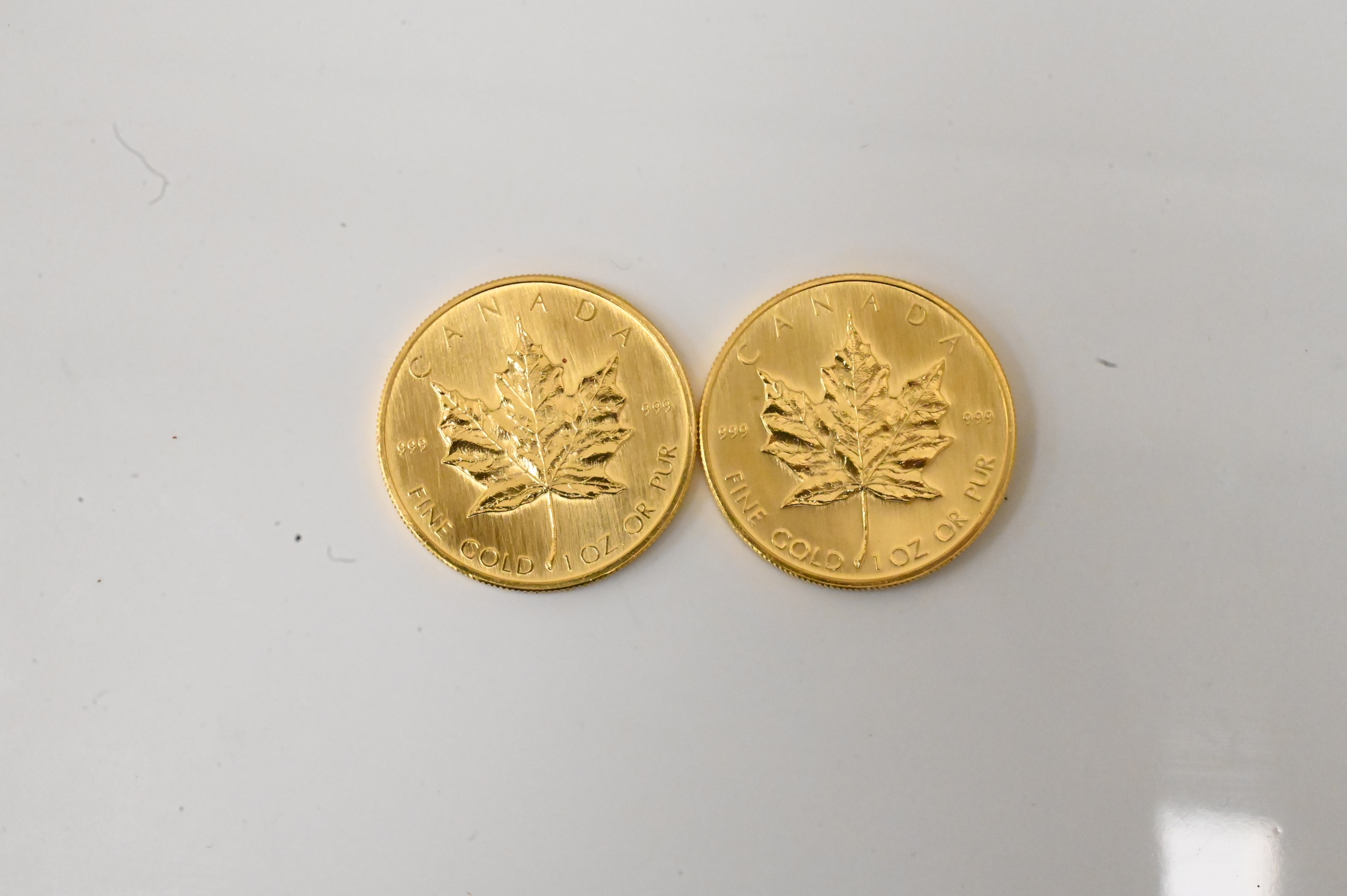 Two 1980 Canadian One Ounce Fine Gold $50 Maple Leafs, 2 oz total