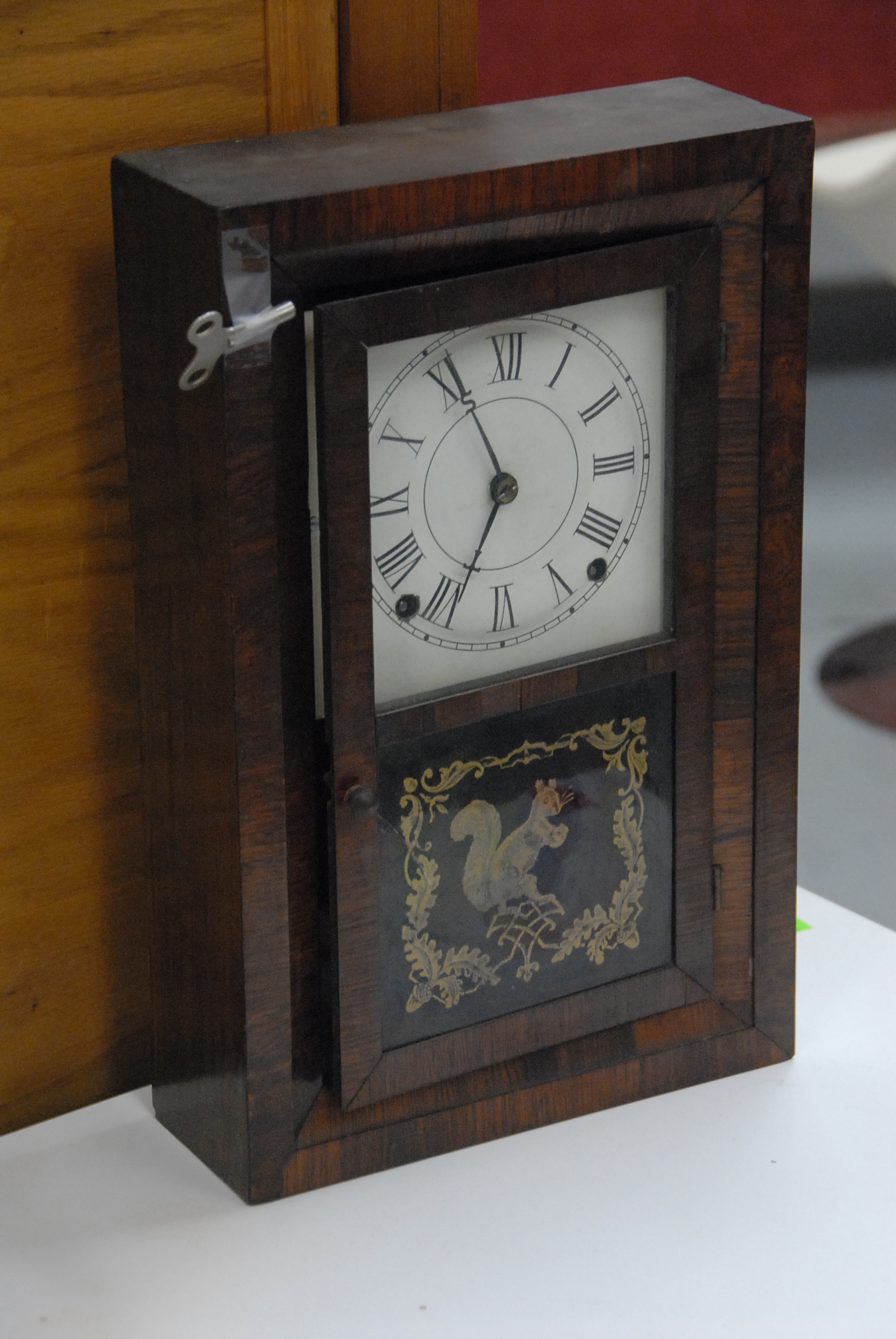 Lot 279: Two Seth Thomas shelf clocks to include rosewood shelf clock. ht. 16in. and one having paint decorated columns. ht. 25.