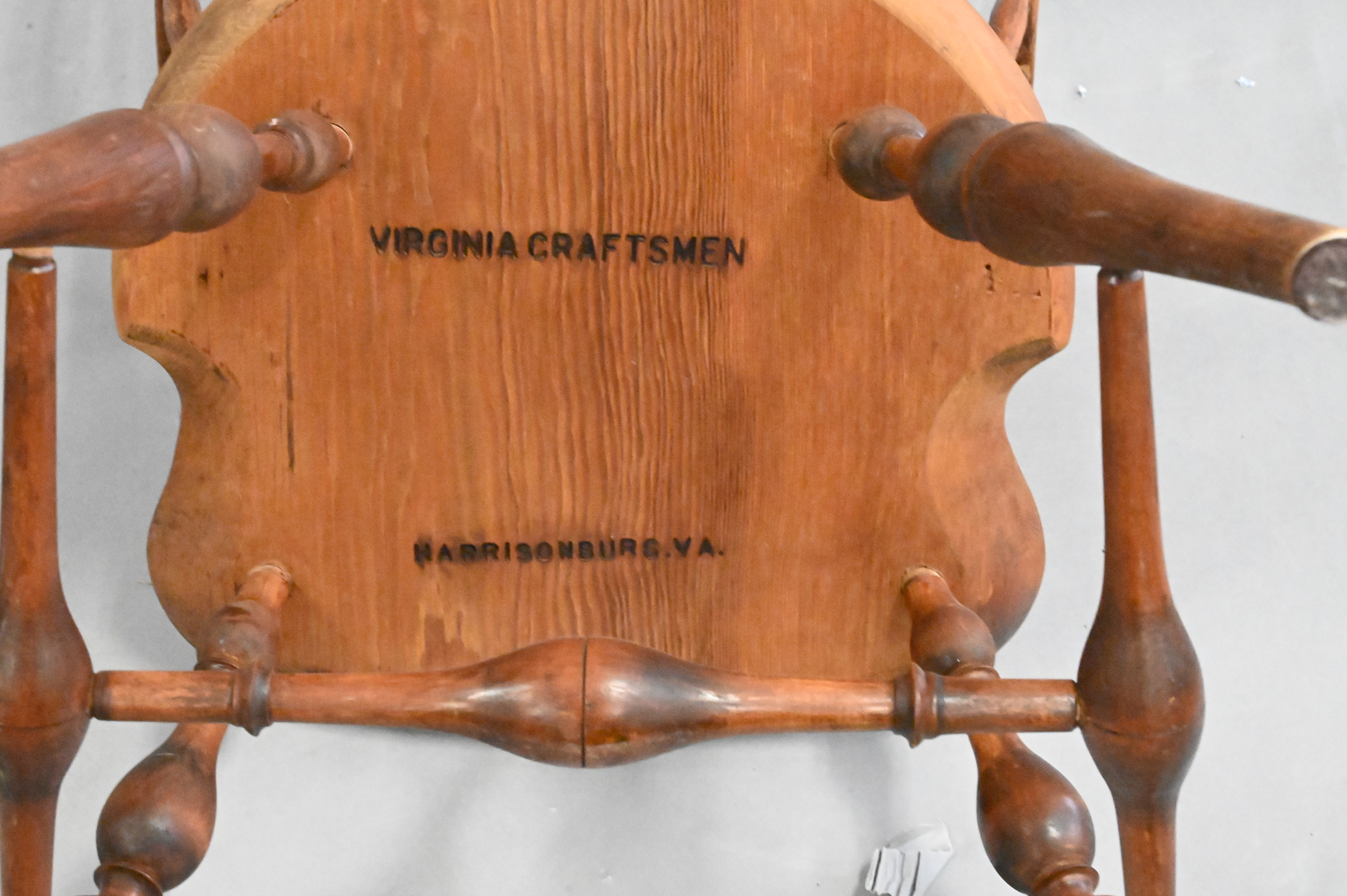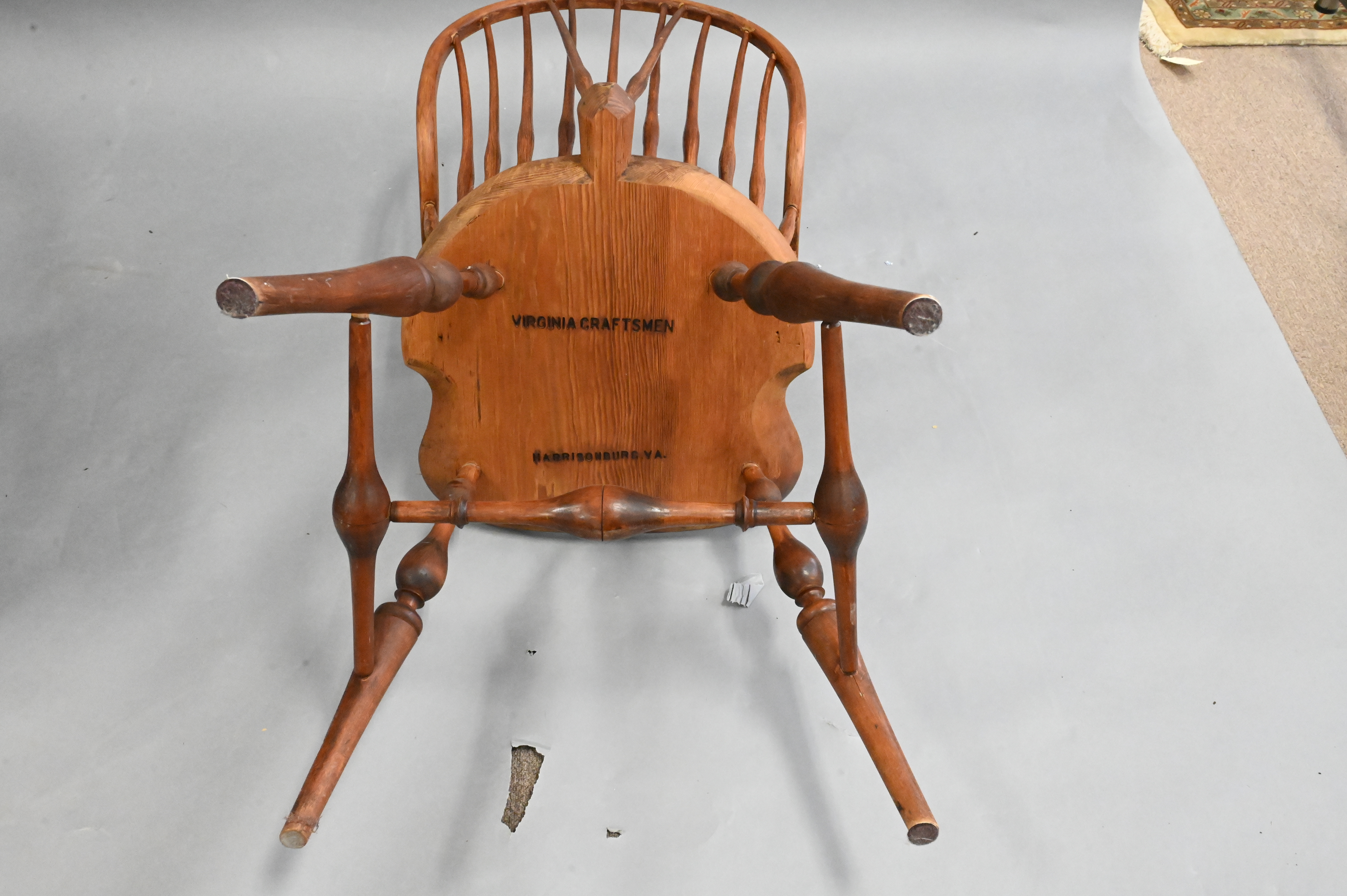 Custom Windsor Armchair stamped Virginia Craftsman, Harrisonburg V.A. height 40 1/2 inches, width 20 1/2 inches