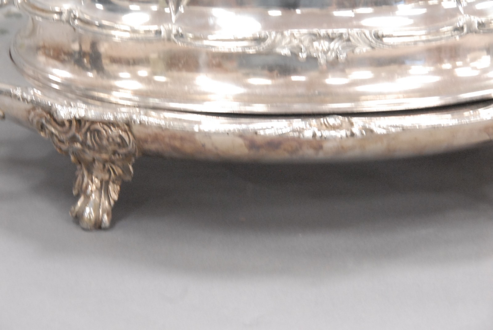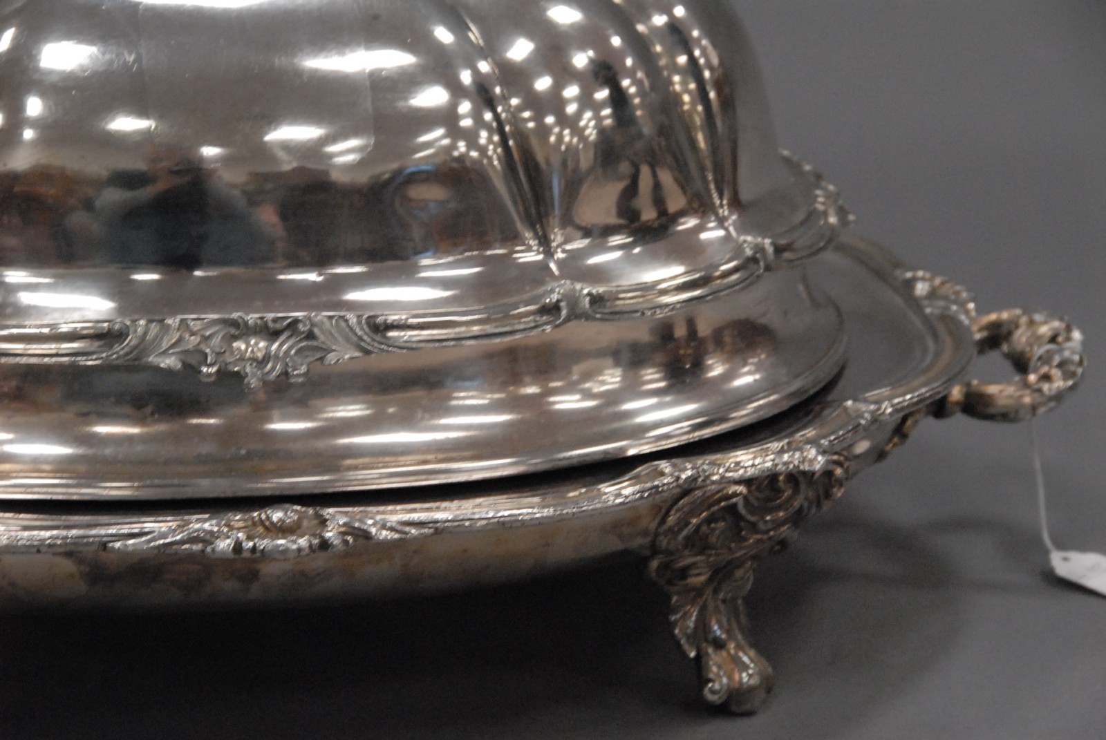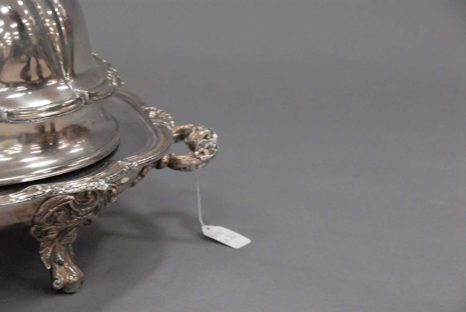 Sheffield silver plated warming Well and Tree footed meat platter along with near matching Sheffield entre cover, 19th century.