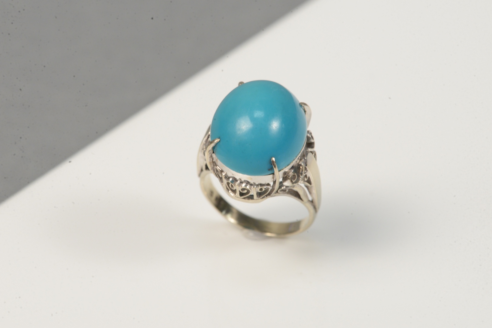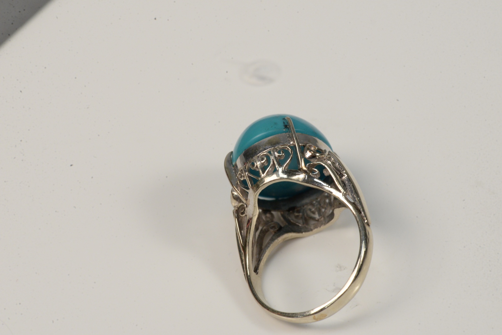 Lot 28: 14 Karat White Gold Ring set with cabochon cut turquoise size 7 1/2 turquoise 15 millimeters x 17.4 millimeters