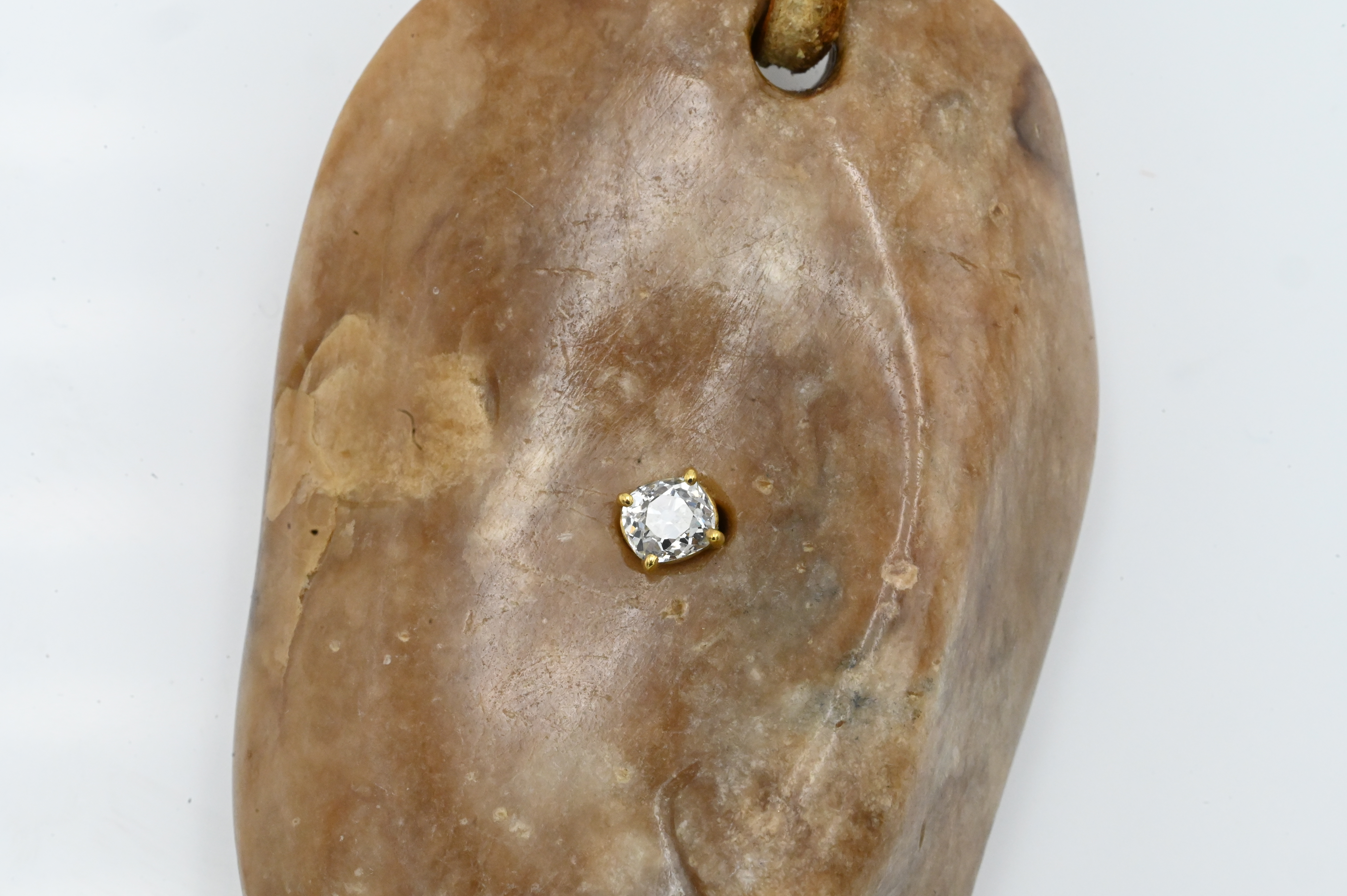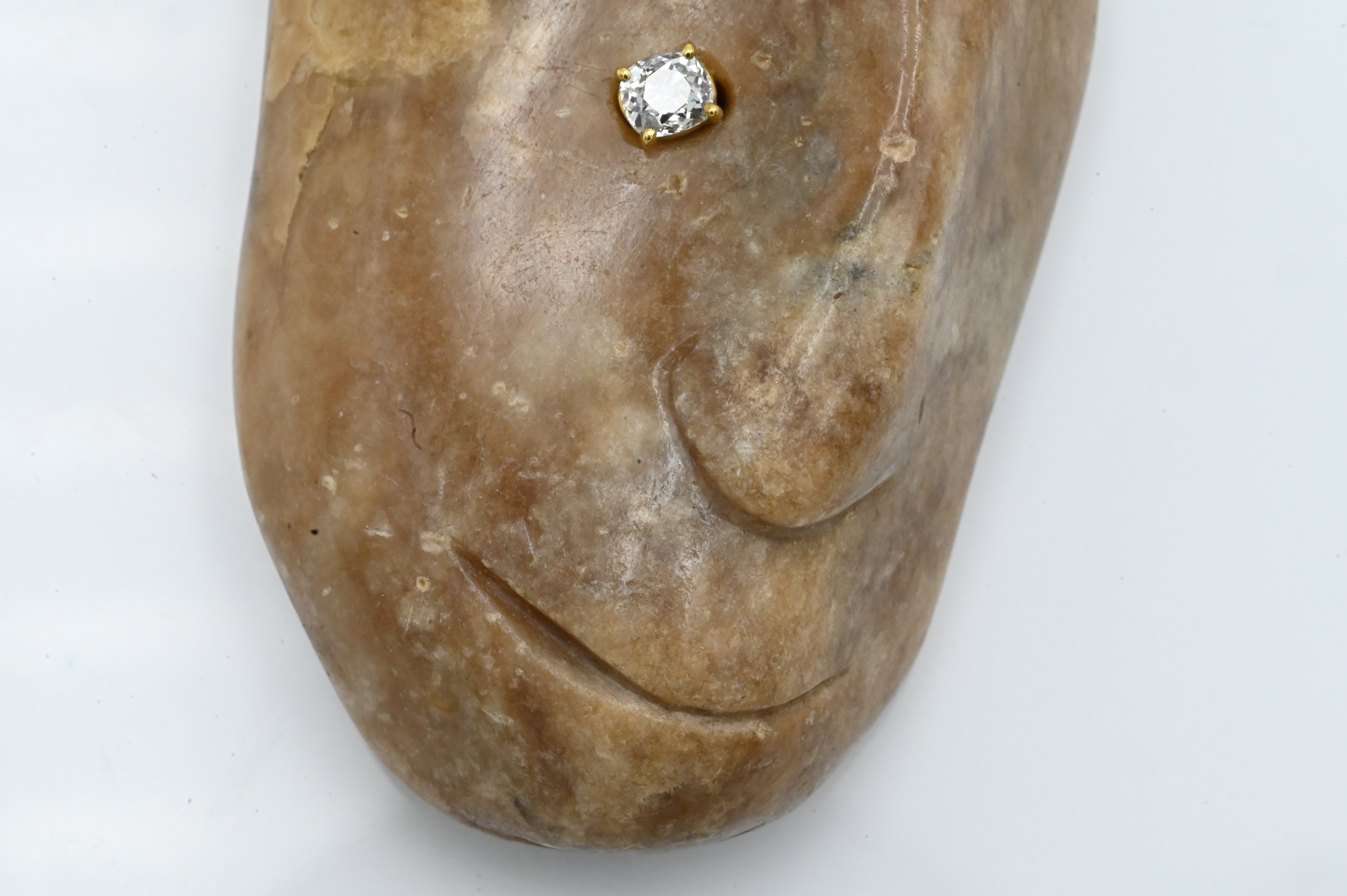 Carved Stone Face Pendant with Diamond Eye on rawhide.