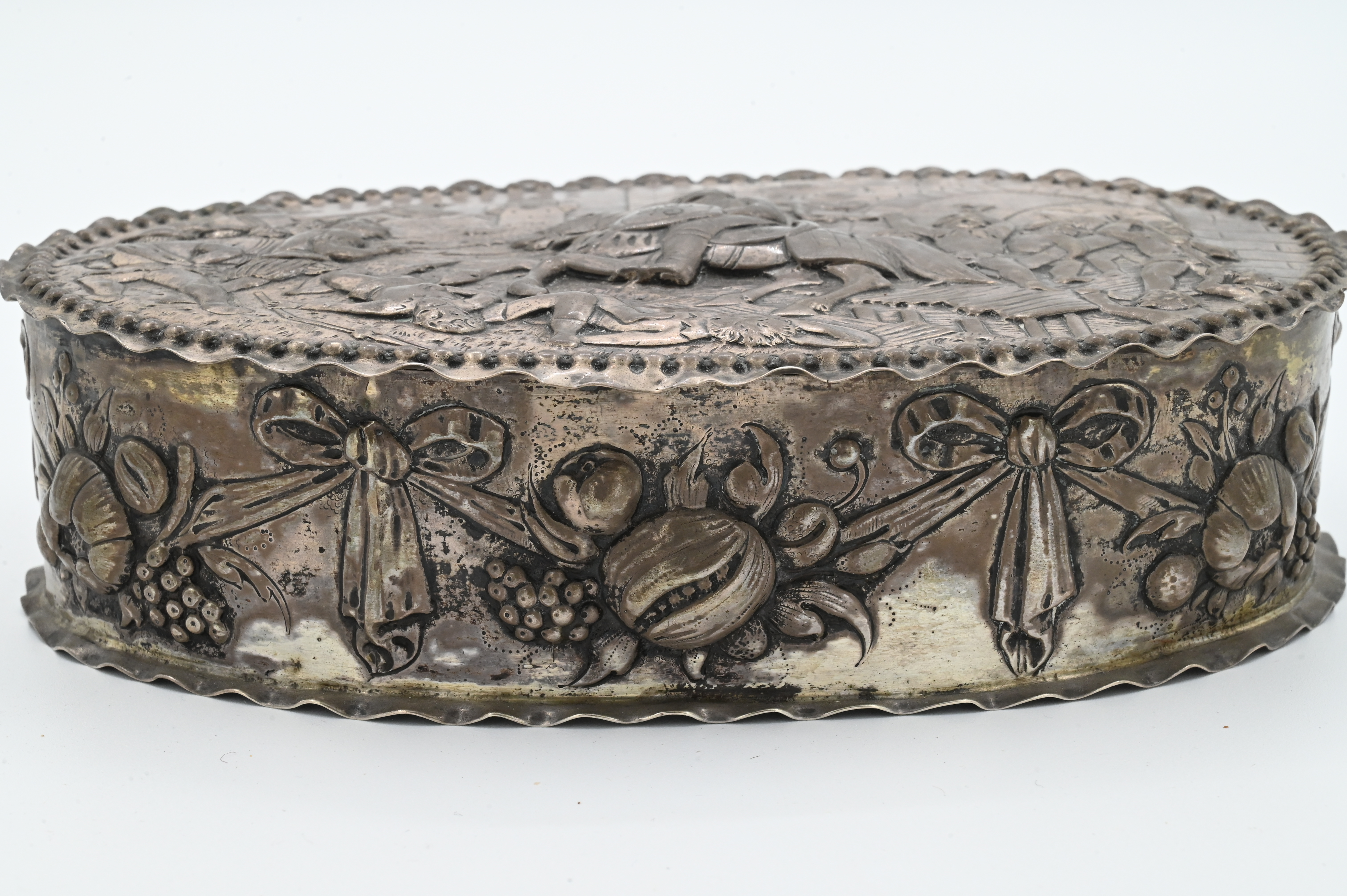 Lot 28: Continental Silver Oval Box having Medieval Scene