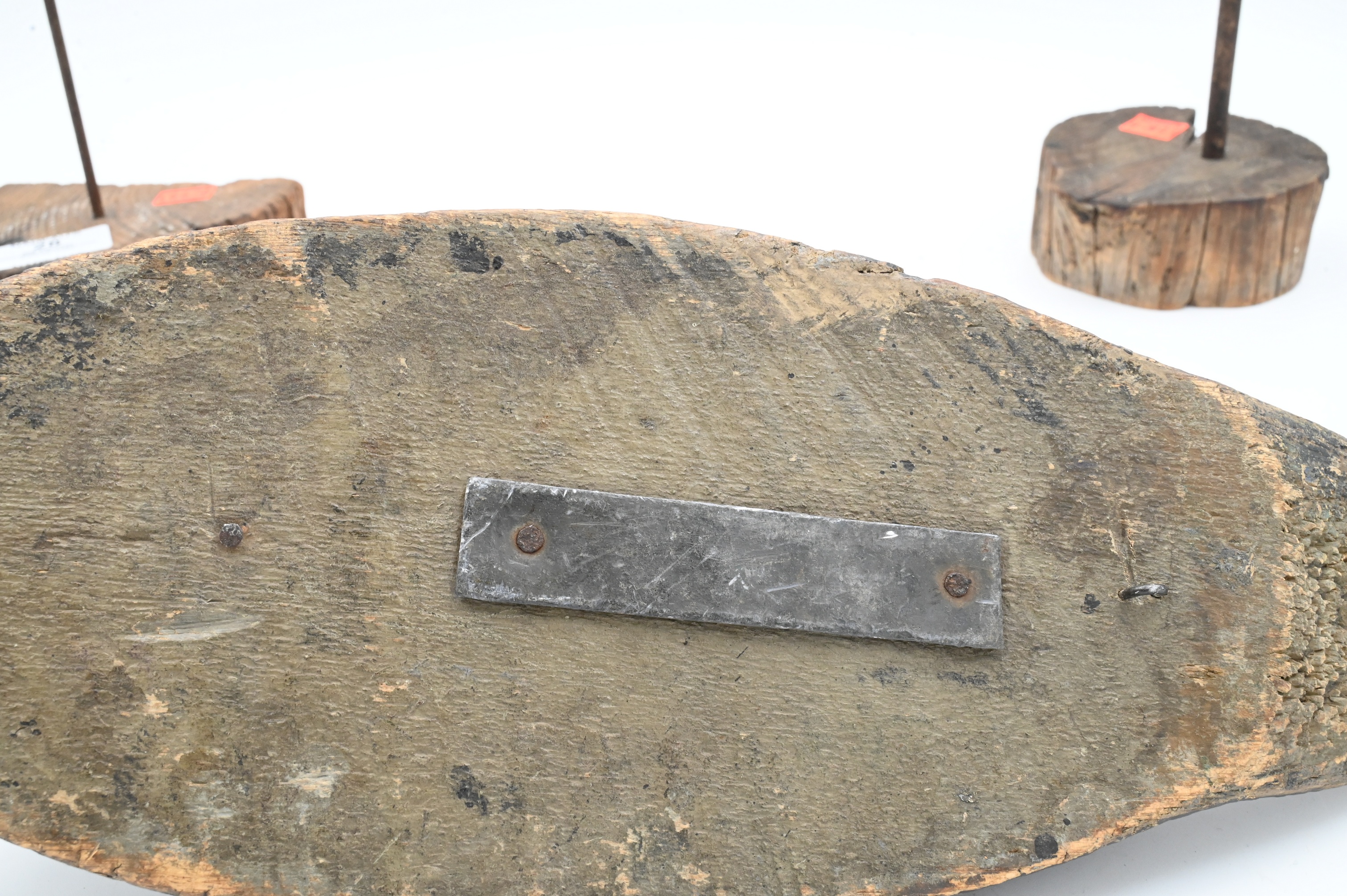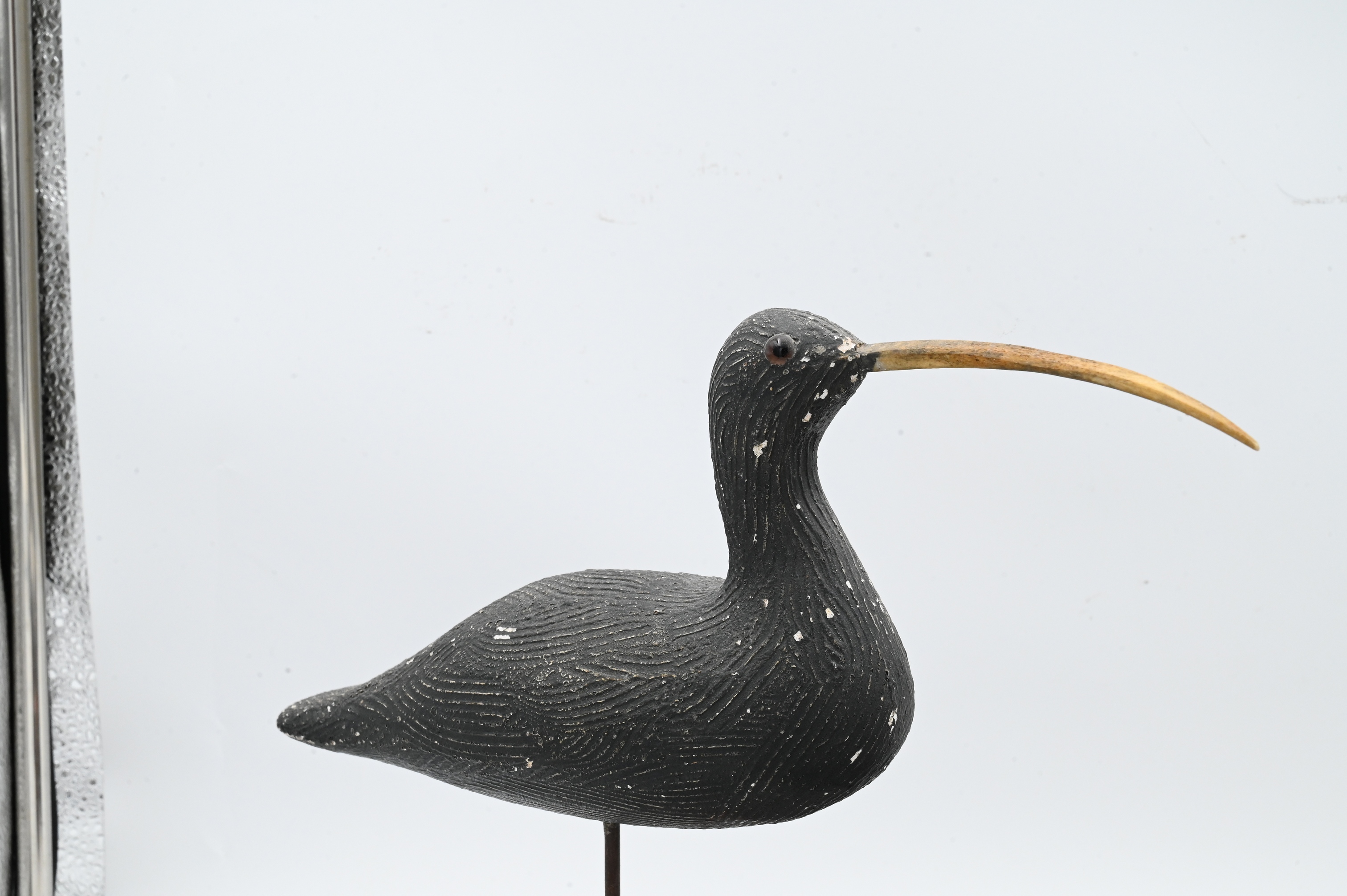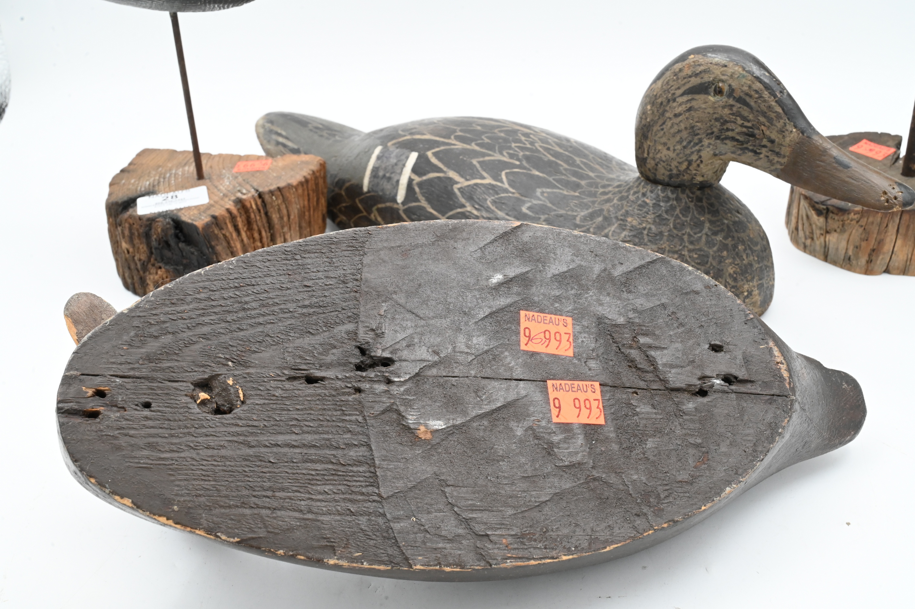 to include two shore birds having glass eyes by Richard Morgan, along with two unsigned duck decoys having articulating heads