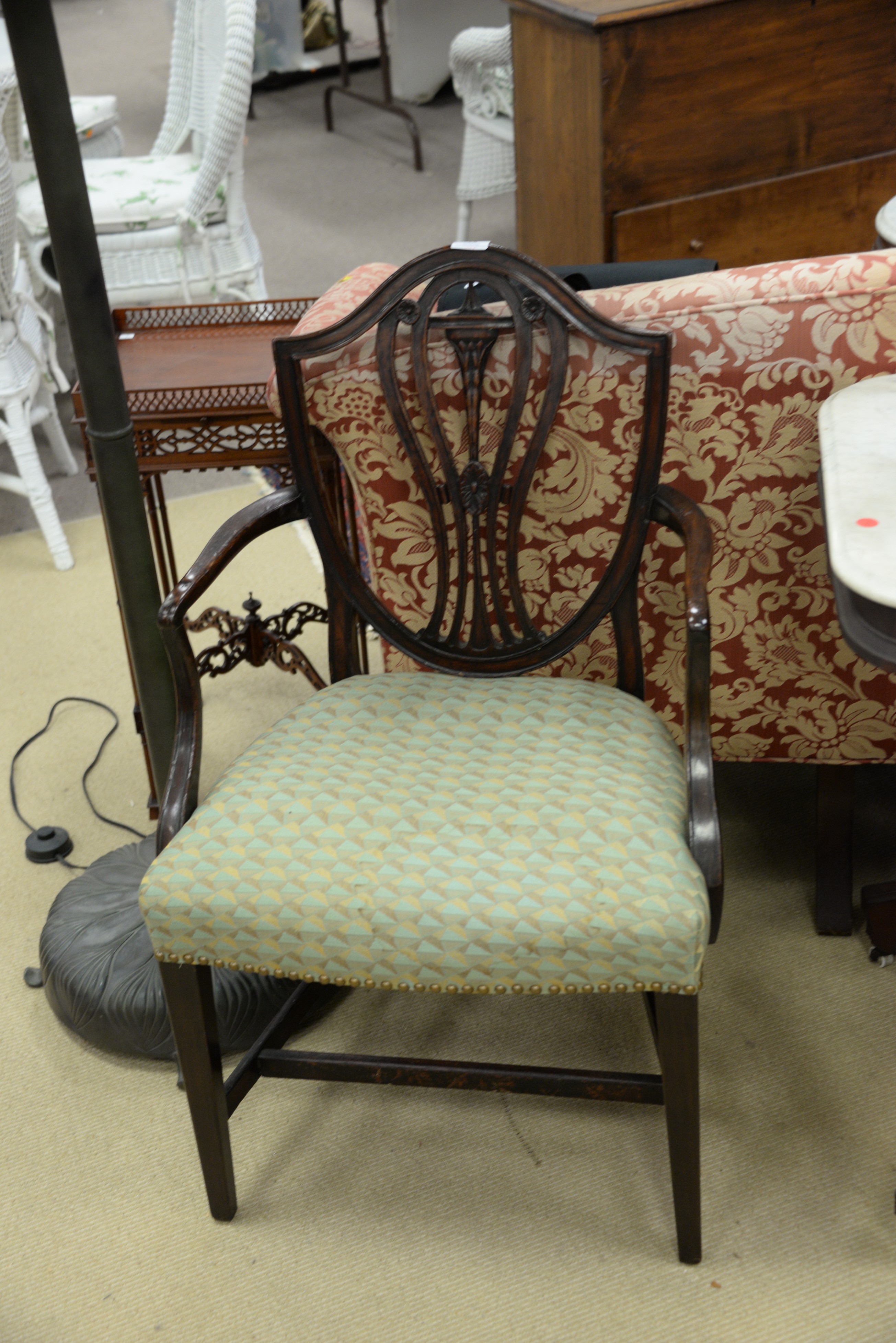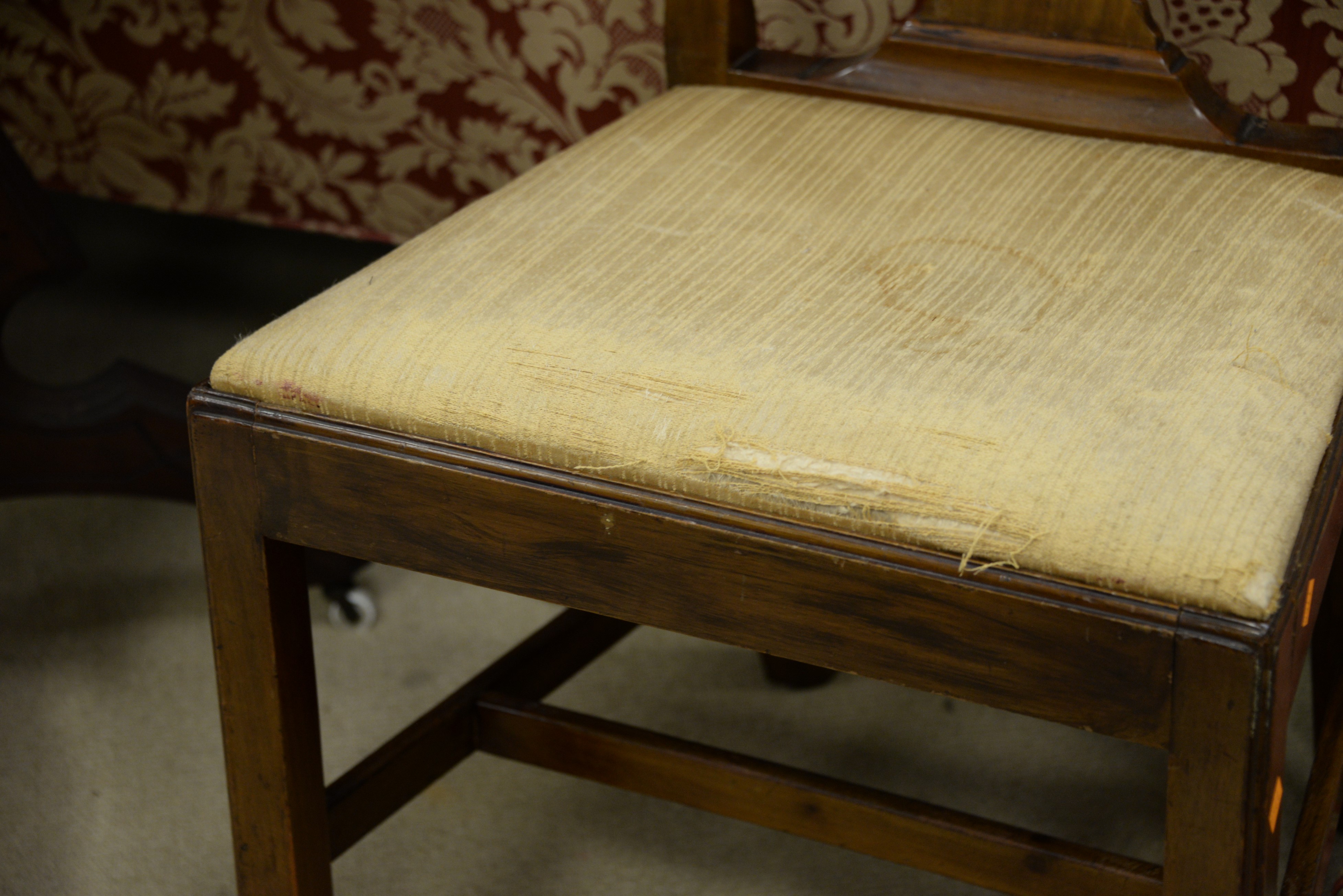 George III armchair and Chippendale side chair.