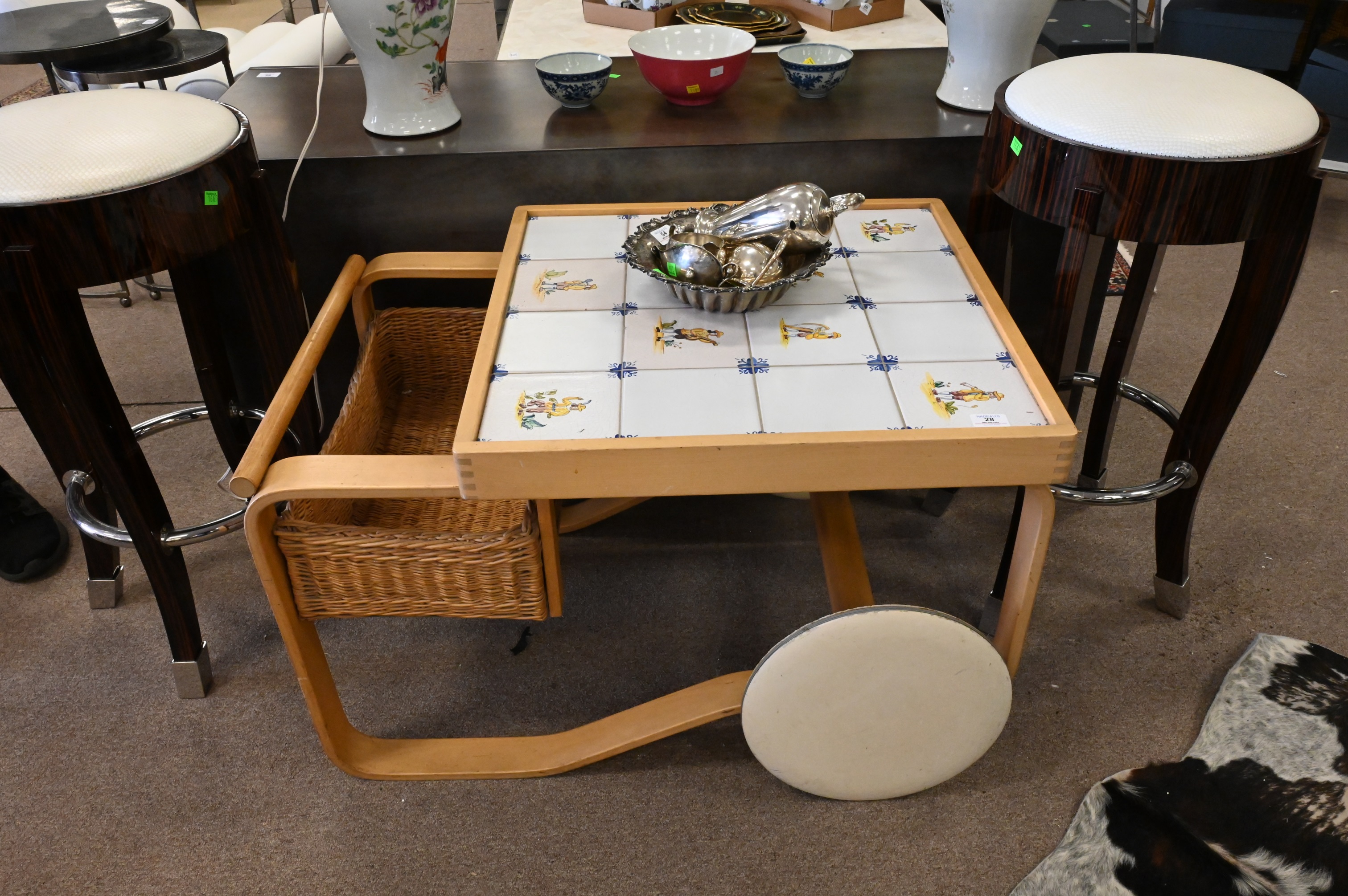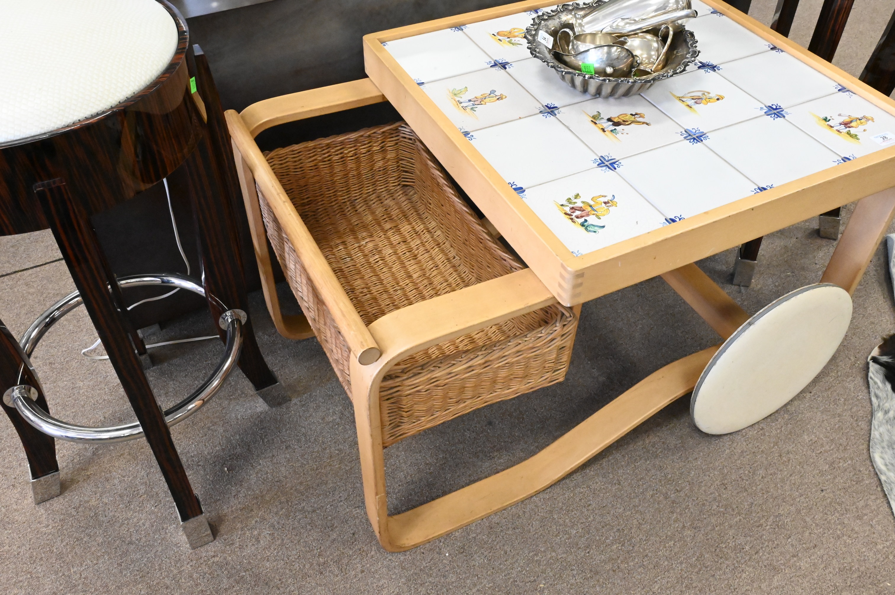 Limited Edition Alvar Aalto Tea Trolley by Artek Cart 900, having tile top, slot head screws, height 23 inches, top 25 1/2″ x 25 1/2″