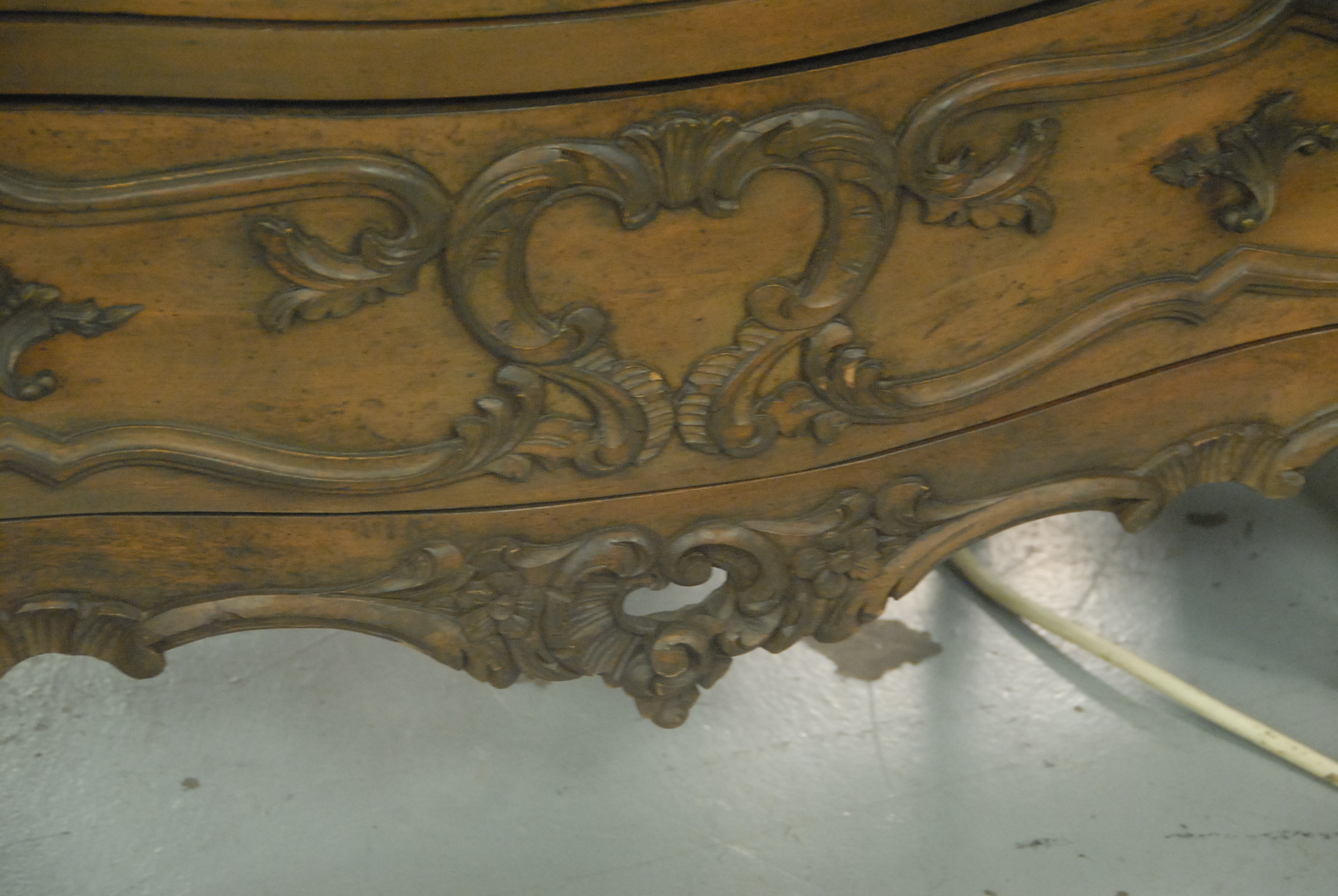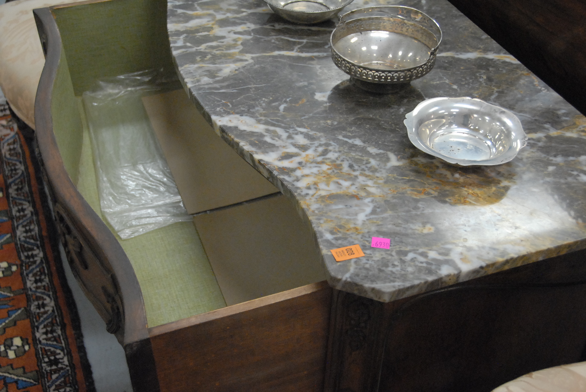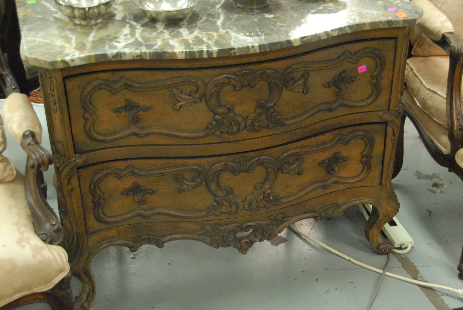Louis XV style commode with grey mottled marble top, ht. 29in. wd. 37 1/2in.